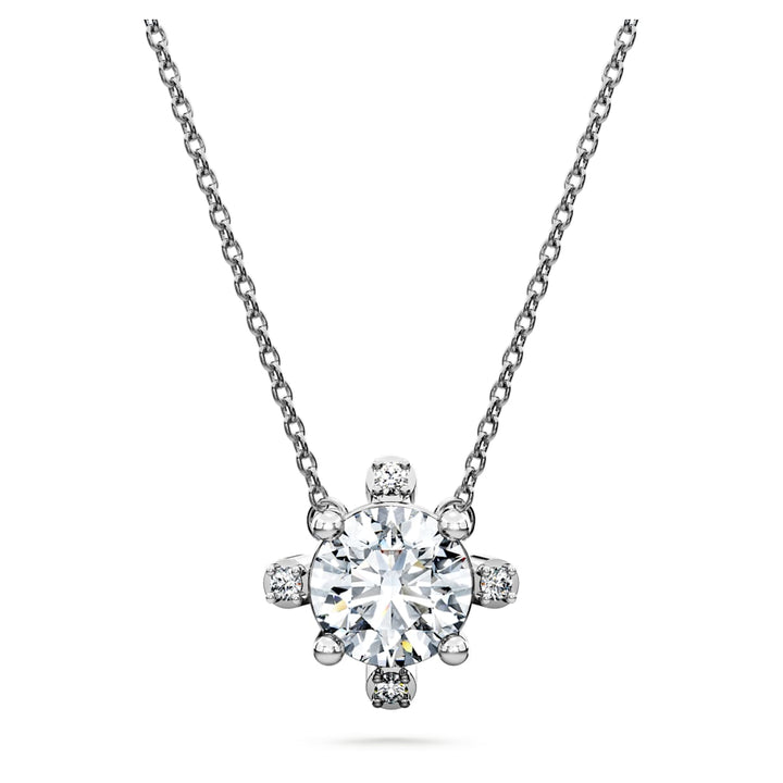 This Galaxy Pendant Lab Grown Diamonds White Gold by Swarovski is crafted for refined drama and radiant impact. Suspended from a delicate chain, the 14K white gold design features a central laboratory grown diamond framed by four smaller diamonds, each expertly faceted for exceptional brilliance. Symbolizing modern luxury and responsible innovation, the pendant offers timeless elegance with a contemporary conscience. Designed to be worn solo or paired with matching pieces, it is an exquisite statement of light, craftsmanship, and Swarovski’s visionary Galaxy collection.