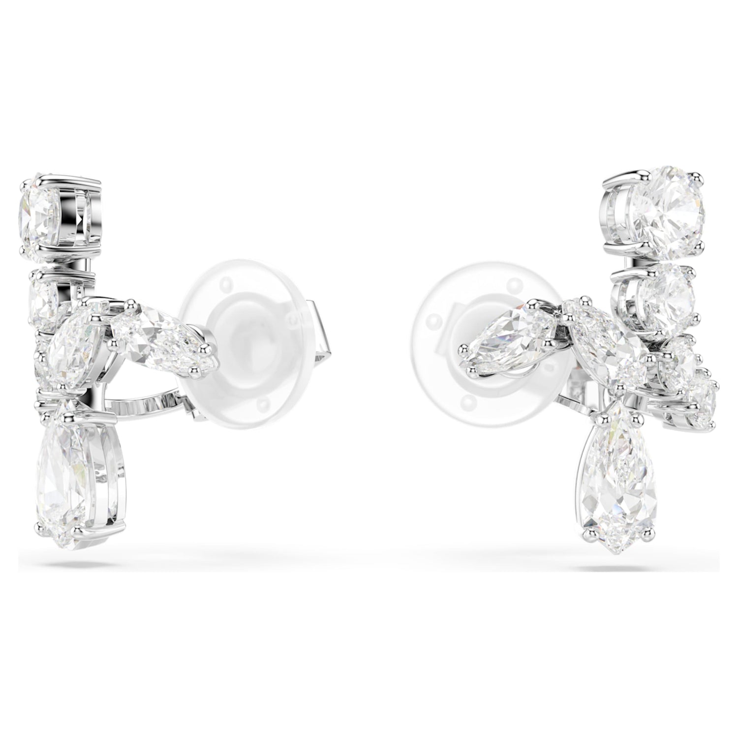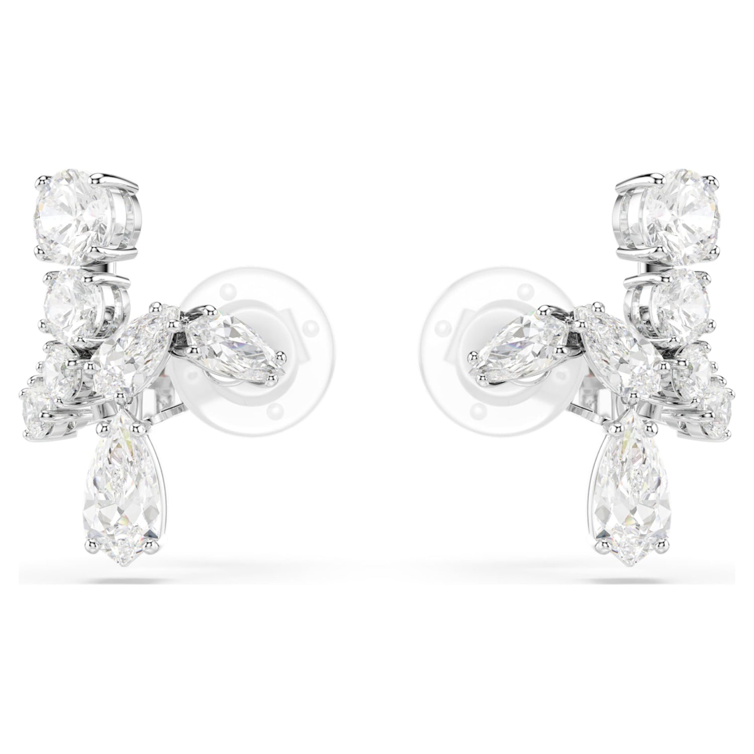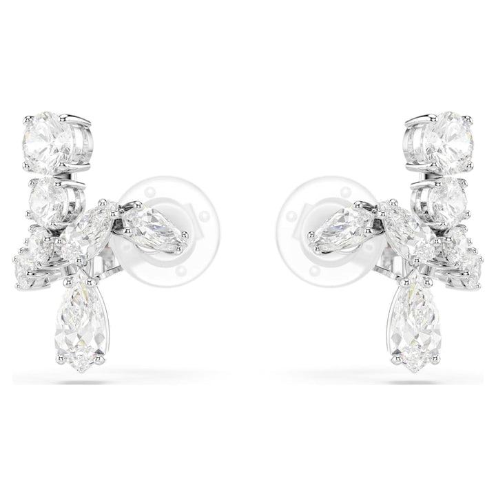 These rhodium-plated clip earrings feature multiple cuts of clear, prong-set Swarovski Zirconia and can be worn as cuffs or traditional earrings.