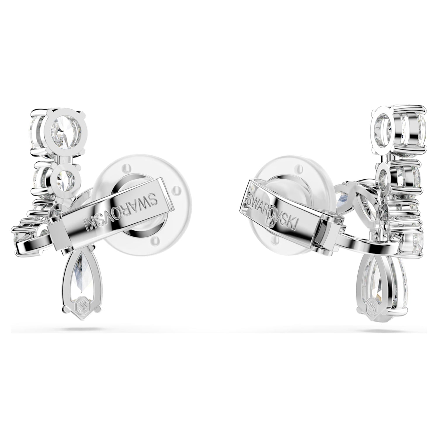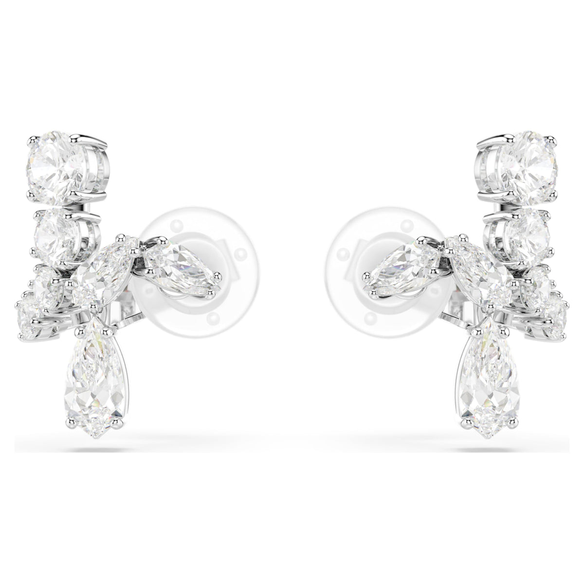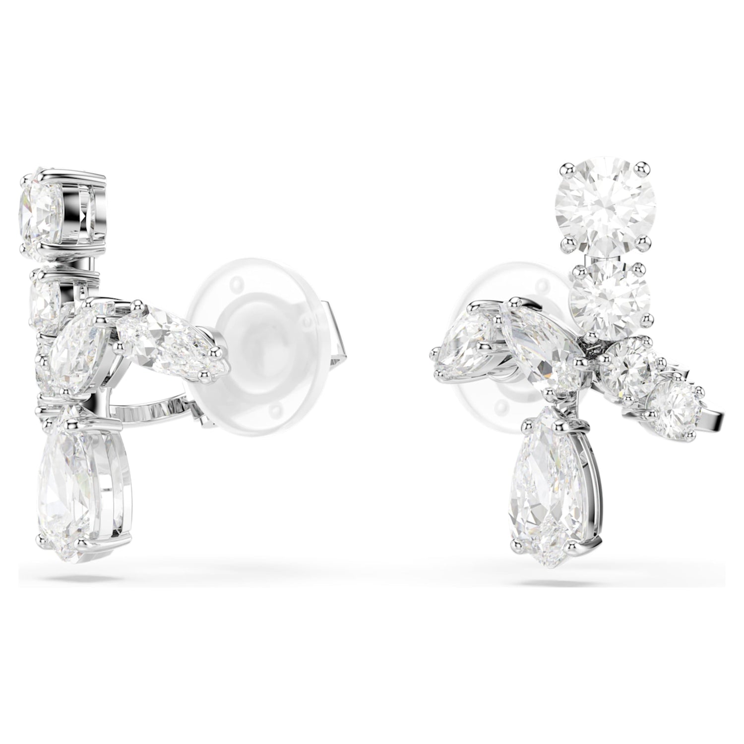 These rhodium-plated clip earrings feature multiple cuts of clear, prong-set Swarovski Zirconia and can be worn as cuffs or traditional earrings.
