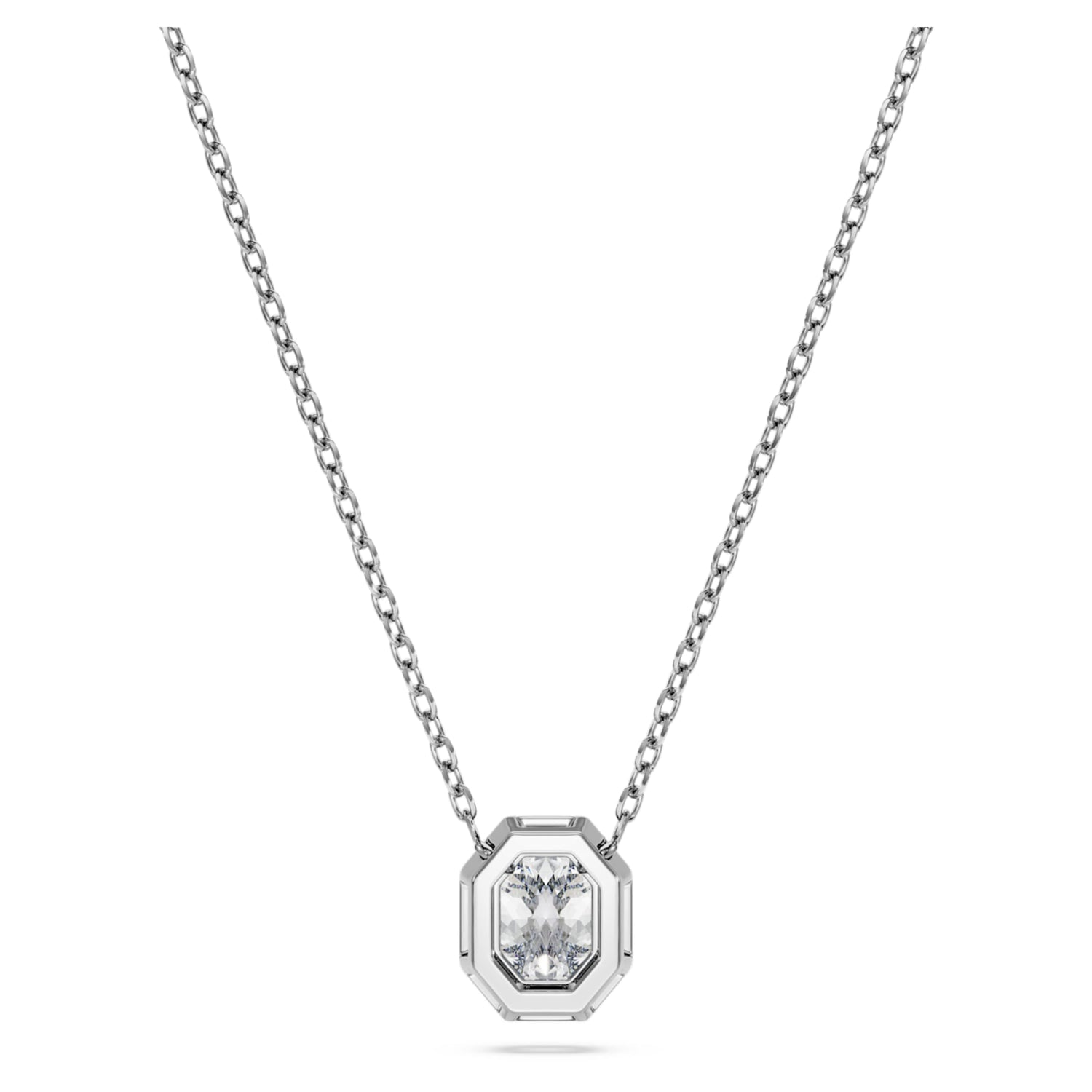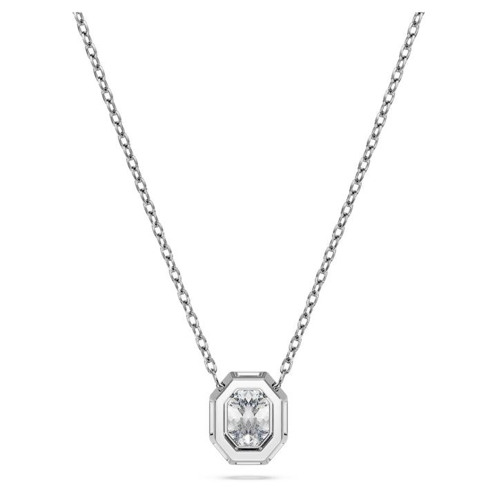 This Octagon Pendant by Swarovski makes a scintillating impression by reflecting light in every direction. Crafted from 14K white gold, the central motif honors the brand’s signature octagon shape, housing a vertical laboratory-grown diamond totaling 0.5 carats. The stone is secured in a faceted bezel setting that enhances its geometry and brilliance. Suspended from a delicate chain, this pendant adds instant luxury to your styling. Pair it with matching Octagon studs for a coordinated, high-end look. This piece is IGI-certified, ensuring the highest standards of diamond quality and sustainable luxury.