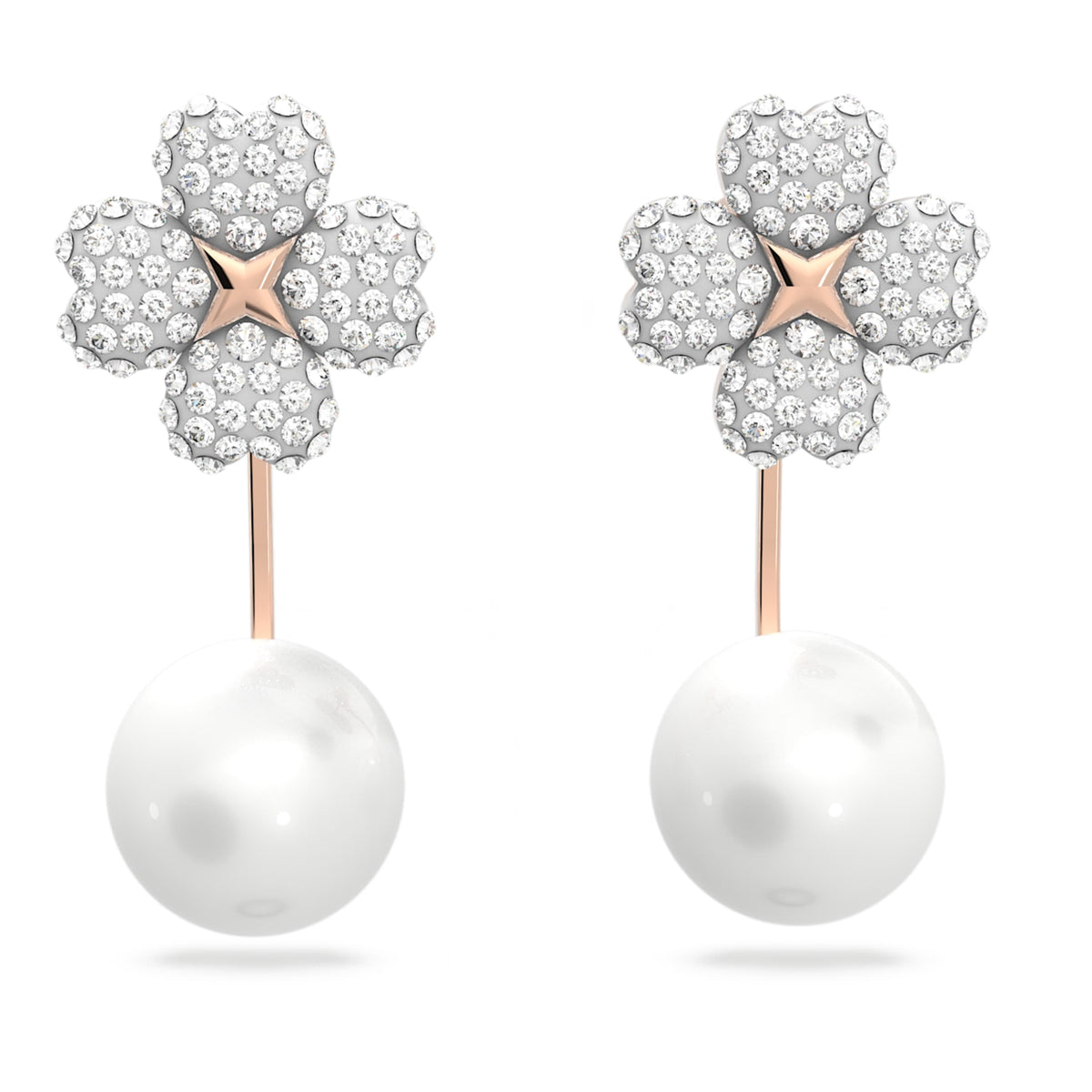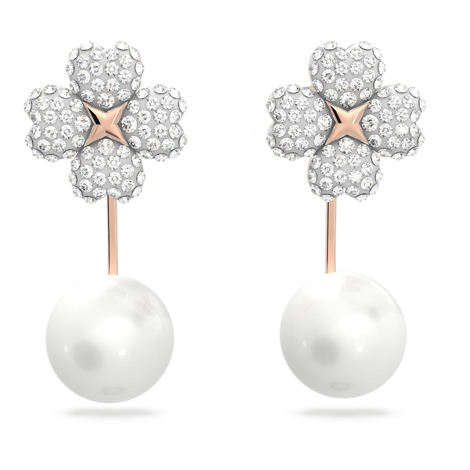 These Latisha Earring Jackets by Swarovski allow you to express your individuality through a feminine and highly versatile design. Inspired by the soft forms of flowers, the earrings feature shimmering crystals set with the brand's exclusive Pointiage® technique. Finished with warm rose gold-tone plating, they offer a romantic and sophisticated look. The innovative design allows you to wear them as simple floral studs or attach the Crystal Pearl jackets for a more dramatic effect, depending on your mood and outfit. They are a perfect example of Swarovski’s commitment to adaptable, high-quality, and creative jewelry design.