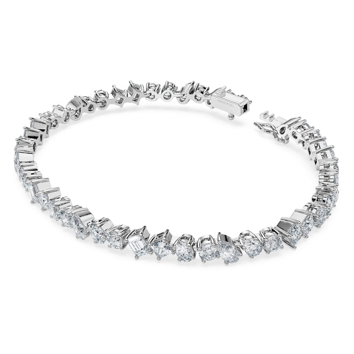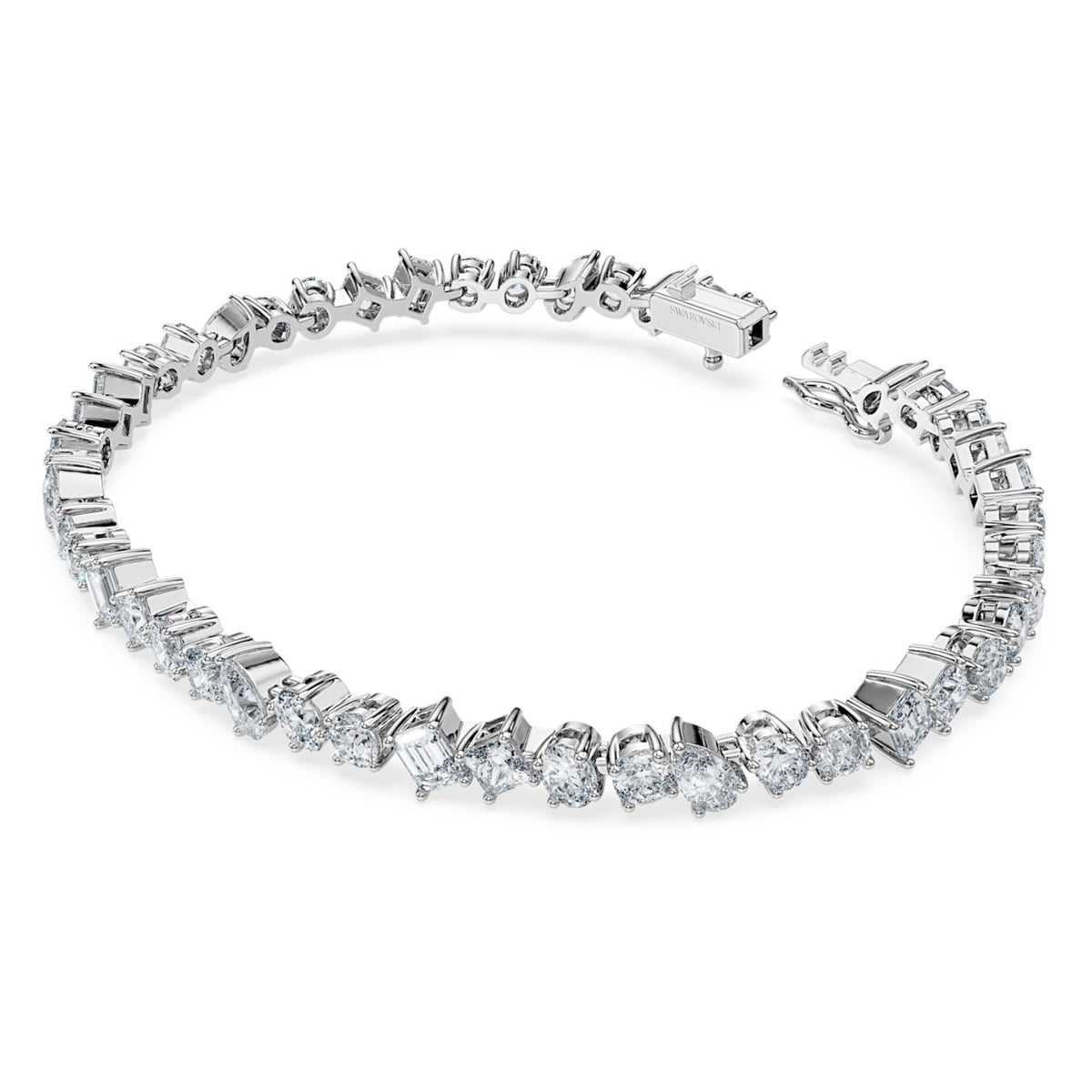 This Galaxy Tennis Bracelet by Swarovski is a finely crafted masterpiece that surrounds your wrist in exceptional beauty and luxury. The 14K white gold design features an all-around strand of laboratory-grown diamonds, meticulously presented in a variety of fancy shapes to create a dynamic and high-end sparkle. Part of the IGI certified collection by Giovanna Engelbert, this piece represents a timeless yet modern approach to jewelry. It is a perfect choice for celebrating a memorable milestone or adding a sense of eternal elegance to your daily wardrobe.