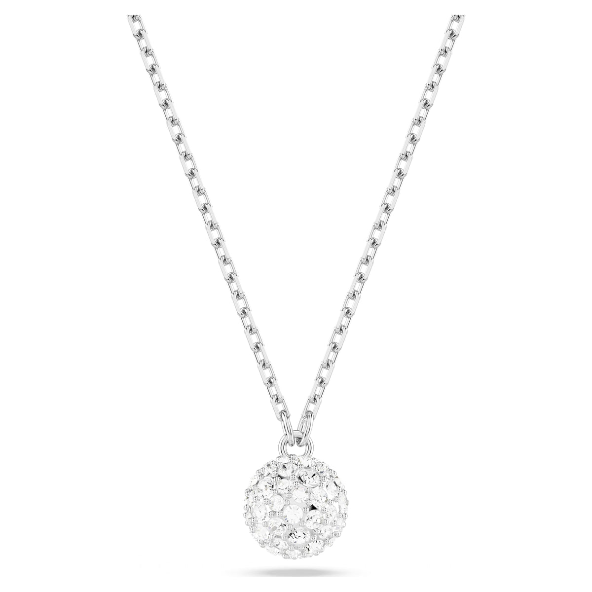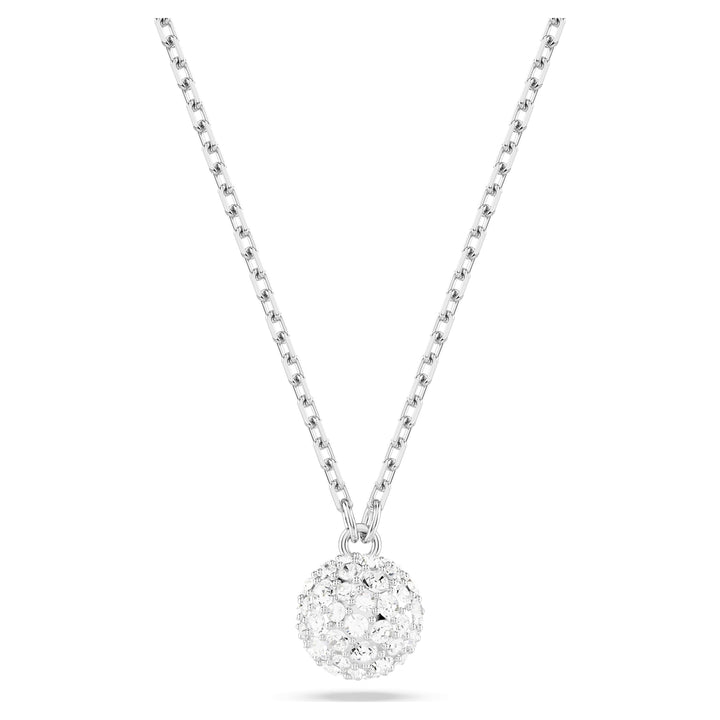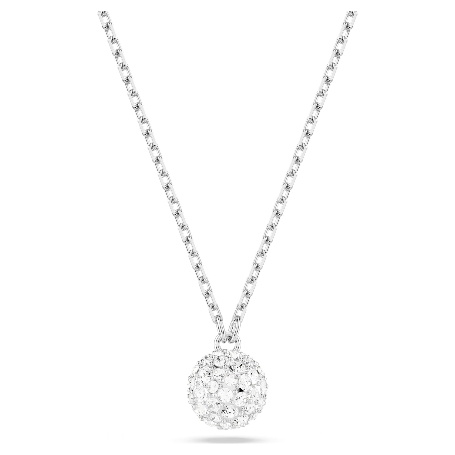 Shimmering like a distant planet in the night sky, this rhodium plated pendant features a 3D sphere adorned with a pavé of clear crystals. Suspended from an elegant chain with a lobster closure, it’s a dazzling piece to wear solo or layer with equally imaginative Dextera pieces.