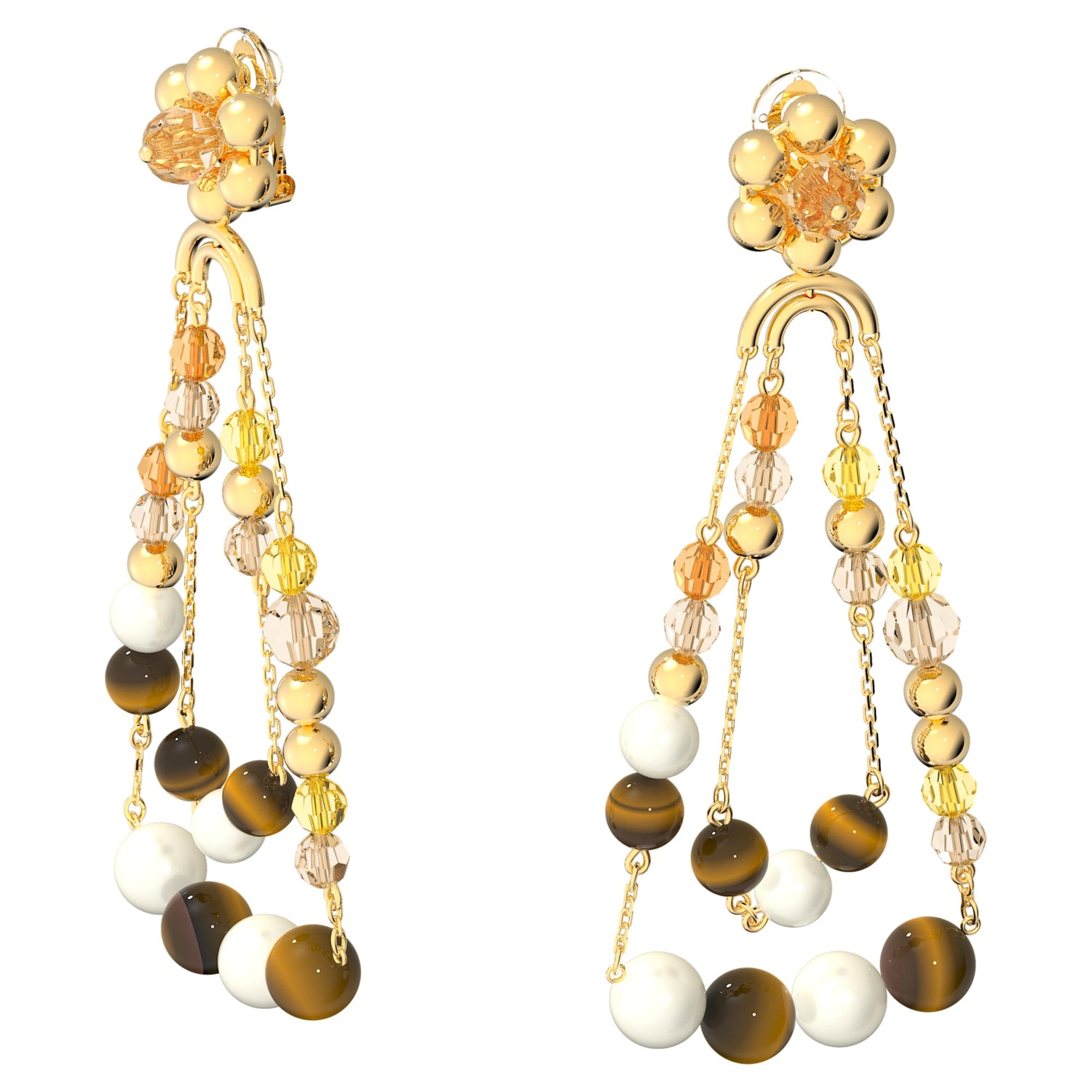 Elevate your everyday wardrobe with these alluring drop earrings. Channeling the bohemian bead trend in a contemporary way, this lustrous pair showcases an eclectic mix of crystals, tiger's eye beads and mother of pearl on a gold-tone plated setting. Wear yours with a simple white T-shirt and your hair tucked to really show them off.