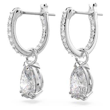 Designed to catch the light at all angles, these exquisite earrings are destined to become your new favorite. Clear pear-cut stones are suspended from rhodium-plated hoops embellished with dazzling pavé. Wear them with your hair up alongside other pieces from the Stilla family.