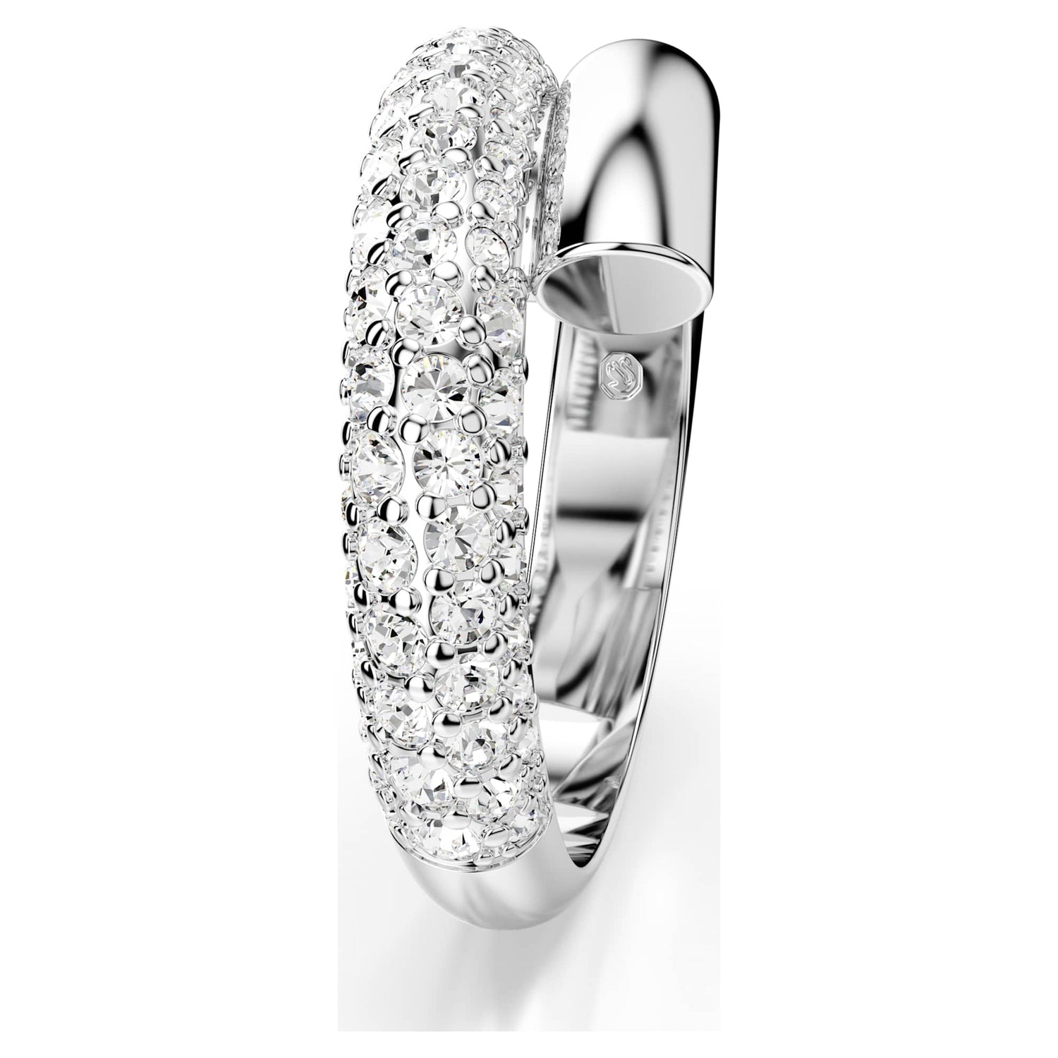 The beauty of this technically refined Dextera ring shines through every detail. The tubular design is rhodium plated, and half encrusted with a dazzling pavé of clear crystals. Stack with a contrasting gold-tone ring to create a look that challenges convention.