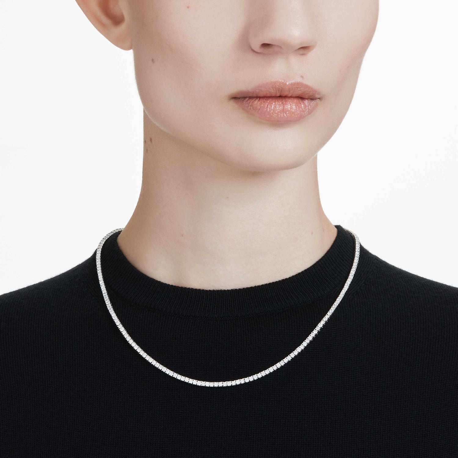 This radiant Eternity necklace accentuates the classic tennis style with luxurious detail. The 14K white gold design features an all-around strand of laboratory grown diamonds, totaling 7.0 carat, presented in beautiful round cuts. A timeless piece of jewelry for yourself, or a perfect gift for a memorable milestone. This jewelry is IGI (International Gemological Institute) certified and is part of the Eternity collection.