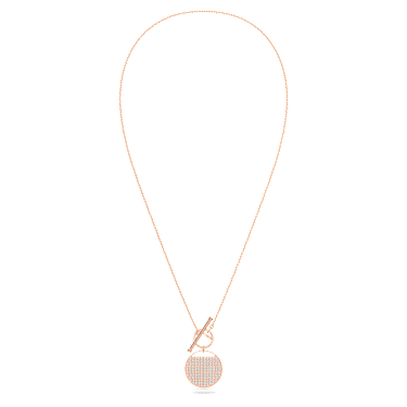 This necklace by Swarovski is perfectly on-trend. The necklace closes in the front with a stylish t-bar closure, while its centerpiece can be flipped to create two different styles. It is adorned by a coin which is covered with clear crystal pavé on one side. Ideal for embellishing casual, everyday outfits and great for trendy layering looks together with other pieces of jewelry.