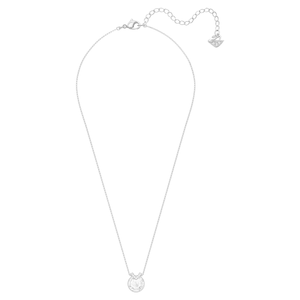 Add a subtle touch of sparkle with this simple, elegant, and feminine rhodium-plated pendant. Showcasing a beautiful round clear crystal, accented with a hint of pavé, it complements any outfit and will take you from day to night in perfect style. The pendant comes on a chain.