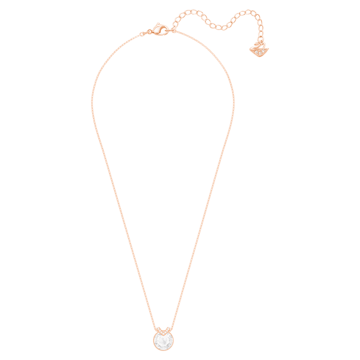 Keep it simple and chic with this elegant pendant in feminine rose-gold tone. Showcasing a beautiful round crystal, accented with a hint of pavé, it complements any outfit and will take you from day to night in perfect style. The pendant comes on a chain.