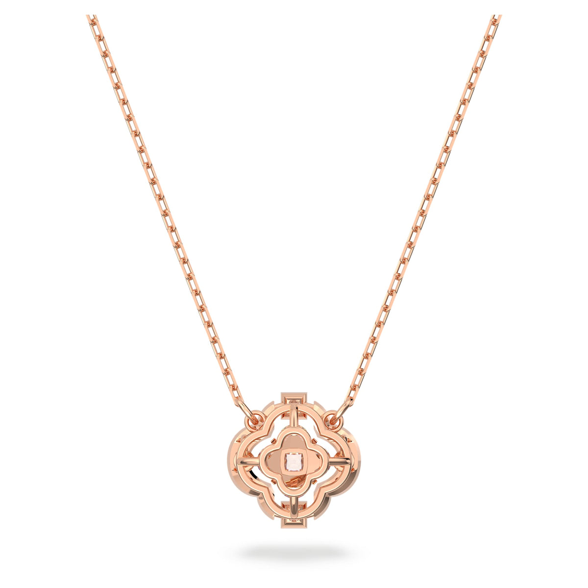 Keep luck on your side with this elegant necklace. It features a shining clear stone in the shape of a clover, which 'dances' inside its setting, finished with a rose gold-tone plated chain. Choose this piece to elevate your look and your luck.