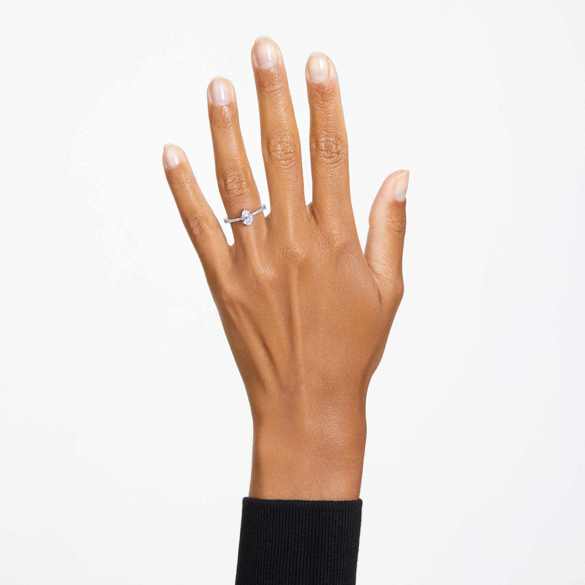 Whether worn solo or stacked, this Stilla cocktail ring is sure to steal attention. Dazzling with a single pear-cut stone, it is set on a pavé-embellished rhodium-plated band for effortlessly chic styling.