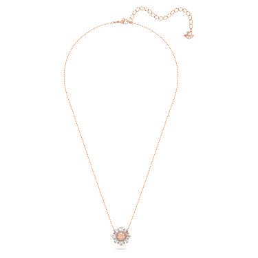 Inspired by the sun, this elegant pendant radiates warmth and energy. Designed with a pink center stone framed by rays of clear stones, it is finished with a rose gold-tone plated setting. Style yours solo or with matching pieces from the Idyllia family and wait for the compliments to roll in.