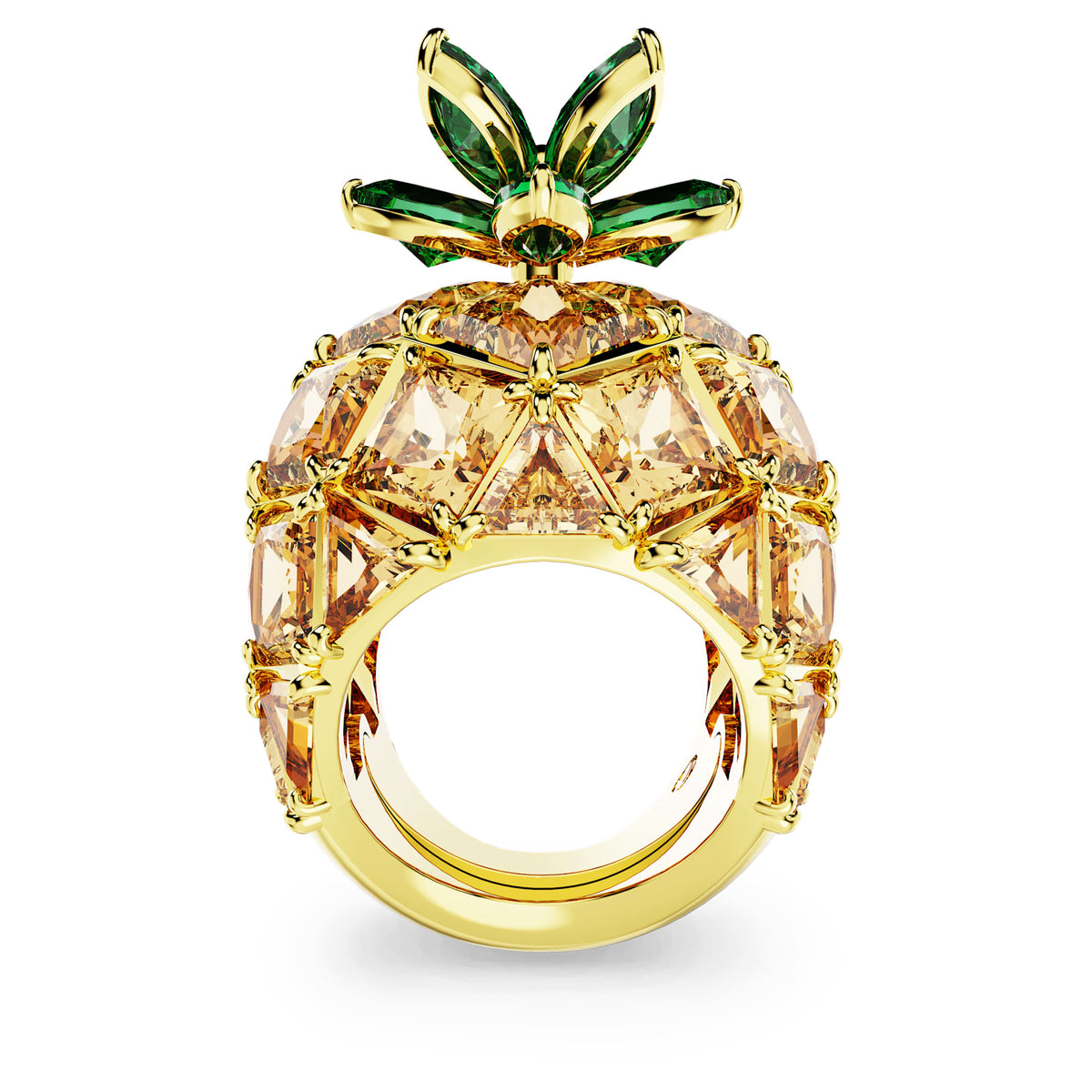 Add a tropical twist to your everyday style with this playful pineapple ring. This exquisite piece is a fine example of Swarovski's creativity and savoir faire, featuring an artistically crafted pineapple in green and amber stones on warm gold-tone plating. This a fun and beautifully expressive piece that will spark conversation.
