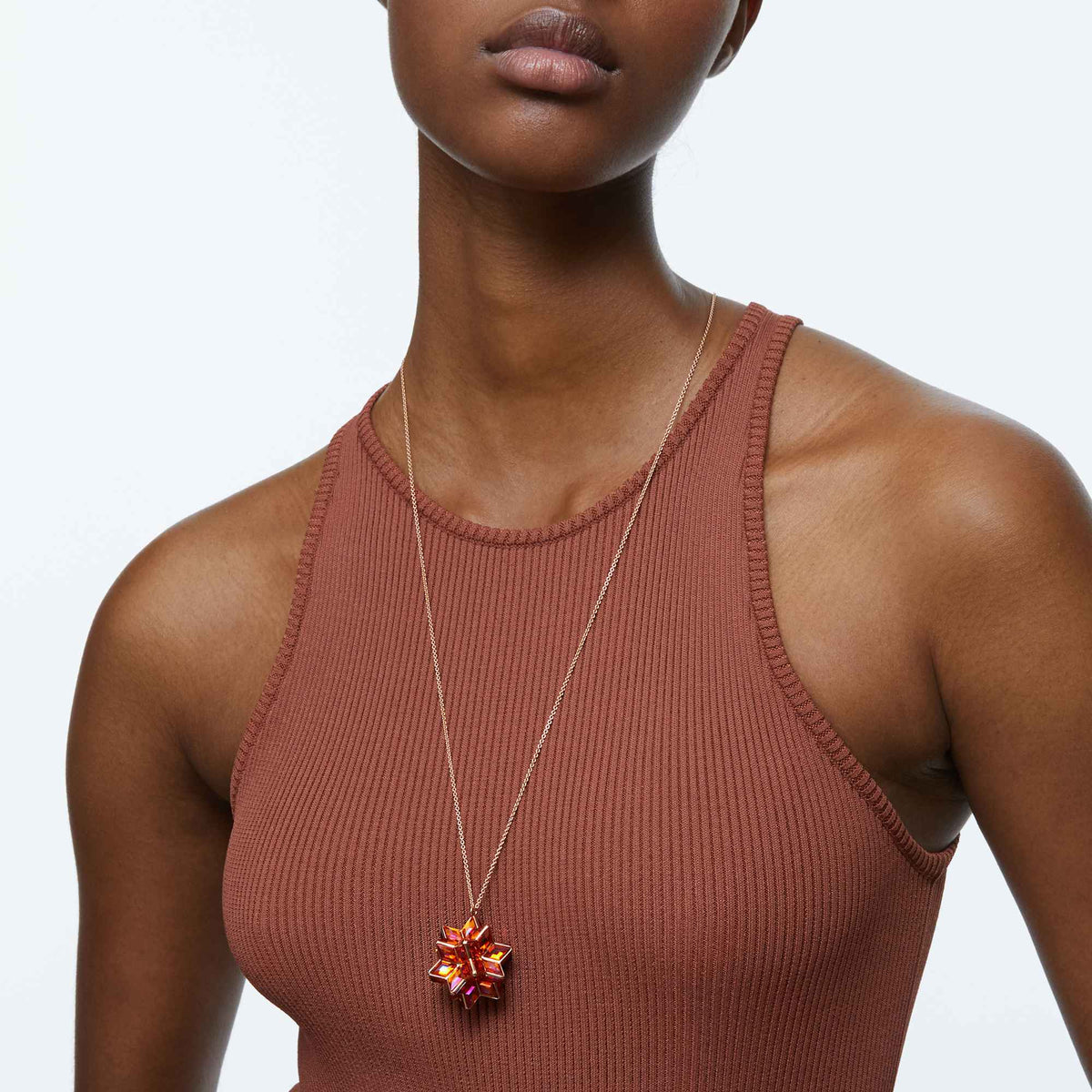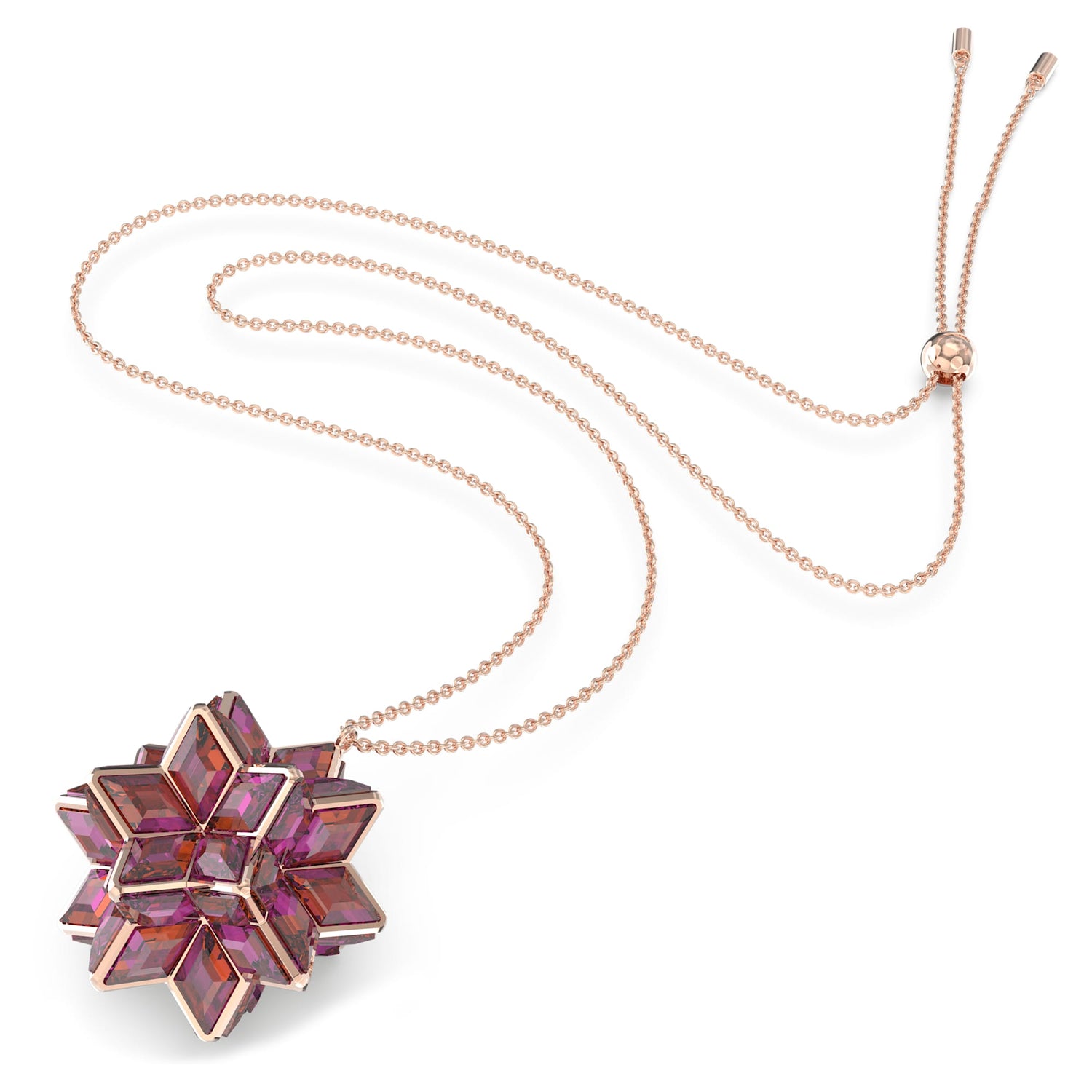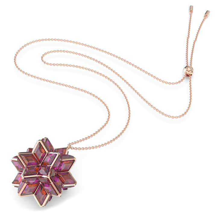 Suspended exquisitely from a rose-gold tone plated round link adjustable chain, this geometric astral pink crystal pendant celebrates the magic of engineering and mathematics in a showstopping starburst form crafted from triangle step cut crystals. Wear it alone or pair it with matching Curiosa earrings for evening adornment with a dynamic edge. This pendant is part of the Curiosa family, designed by Creative Director Giovanna Engelbert for Collection I.