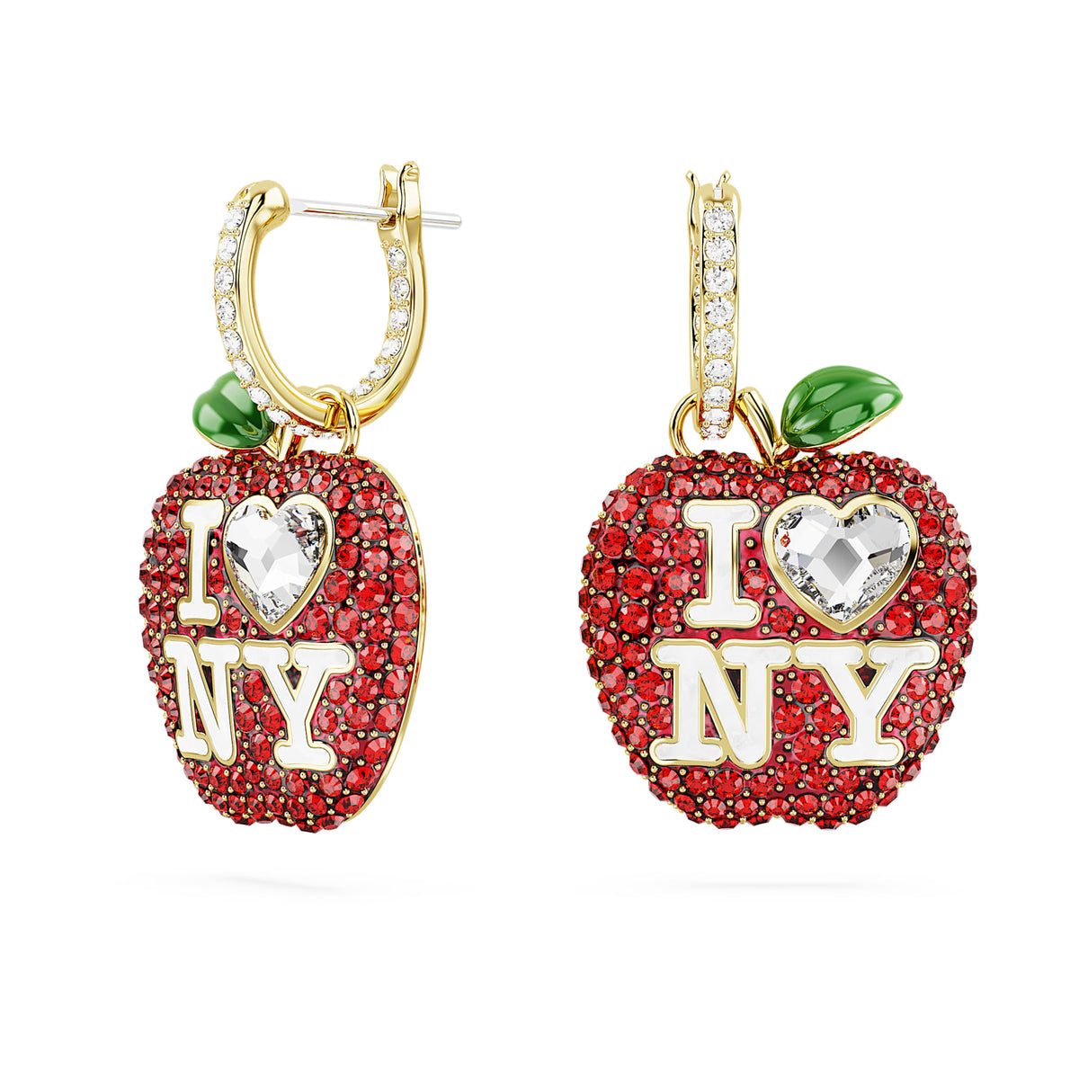 In celebration of New York City, these pretty apple-shaped earrings are gold-tone plated and embellished with a pavé of red pips and an apple motif. The ‘I LOVE NY’ logo is placed at the center with a heart-shaped stone and letters crafted from clear crystals. For extra versatility, the motifs can be removed to form an asymmetric look. These earrings are exclusively available in New York's Fifth Avenue store and are a stylish tribute to an iconic destination.