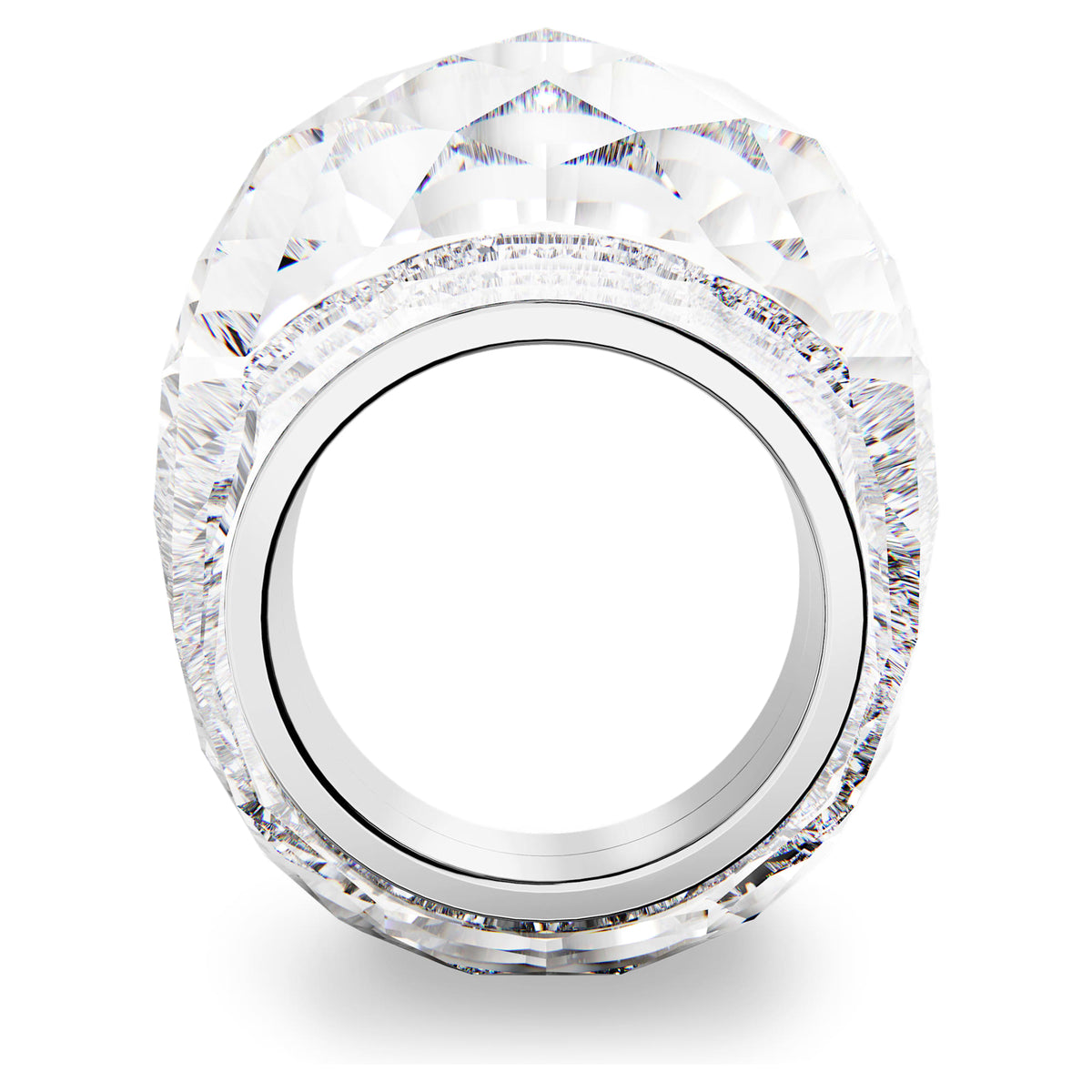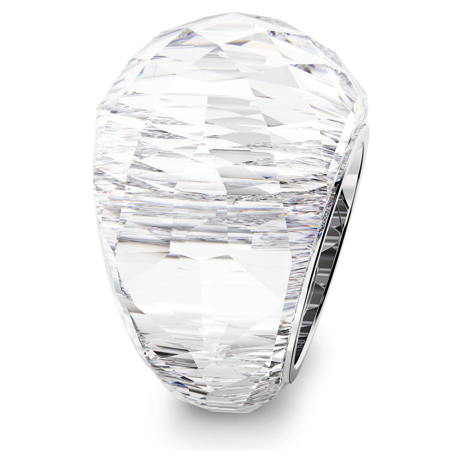 Our signature full crystal-cut Lucent ring is back in a new must-have color, timeless clear crystal. Created with more than 138 facets and inset with a rhodium inlay, this cocktail ring has been crafted for outstanding shine. Dial up the fun and stack it with colorful jewelry.
