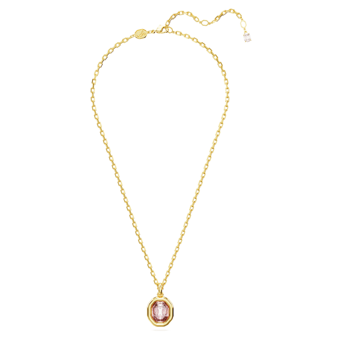 Simple yet captivating, this Imber pendant will infuse any outfit with joy. The gold-tone plated design is worn on a delicate chain and features an octagon-cut pink crystal in a refined bezel setting. A single Swarovski Zirconia is also placed in the elongation for extra light-catching elegance. Gift this jewelry to a loved one for a special occasion or meaningful celebration.