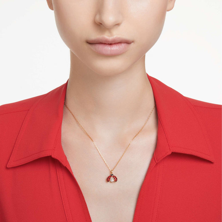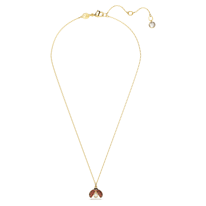 Celebrate your love of nature with this charming pendant. The gold-tone plated design features a stunning ladybug made with an all-over pavé of red and black crystals. Showcasing Swarovski's signature savoir-faire, its wings reveal a single pear-shaped dancing stone inside, bringing the piece to life with continuous motion. Crafted to bring a little magic to any look.