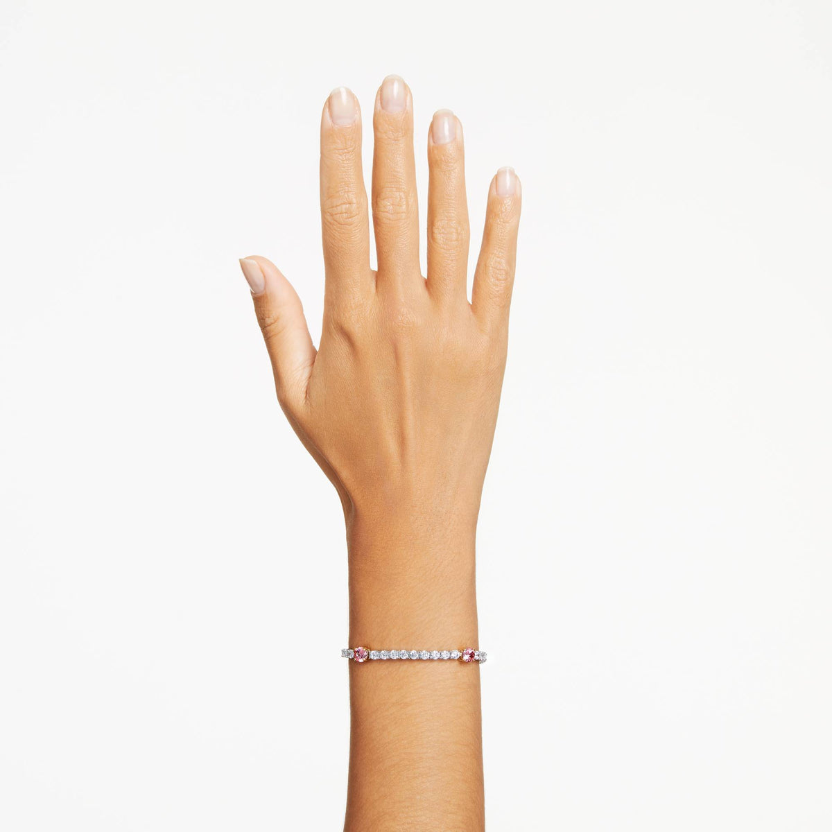 This radiant Matrix tennis bracelet is designed to thrill from every angle. An all-around design of clear round stones is interjected by round stones in alluring pink, illuminated by a rhodium plated setting. For added detail, the elongation is embellished with a scattering of dazzling stones. Elevate every celebration with this elegant piece that you'll reach for again and again.