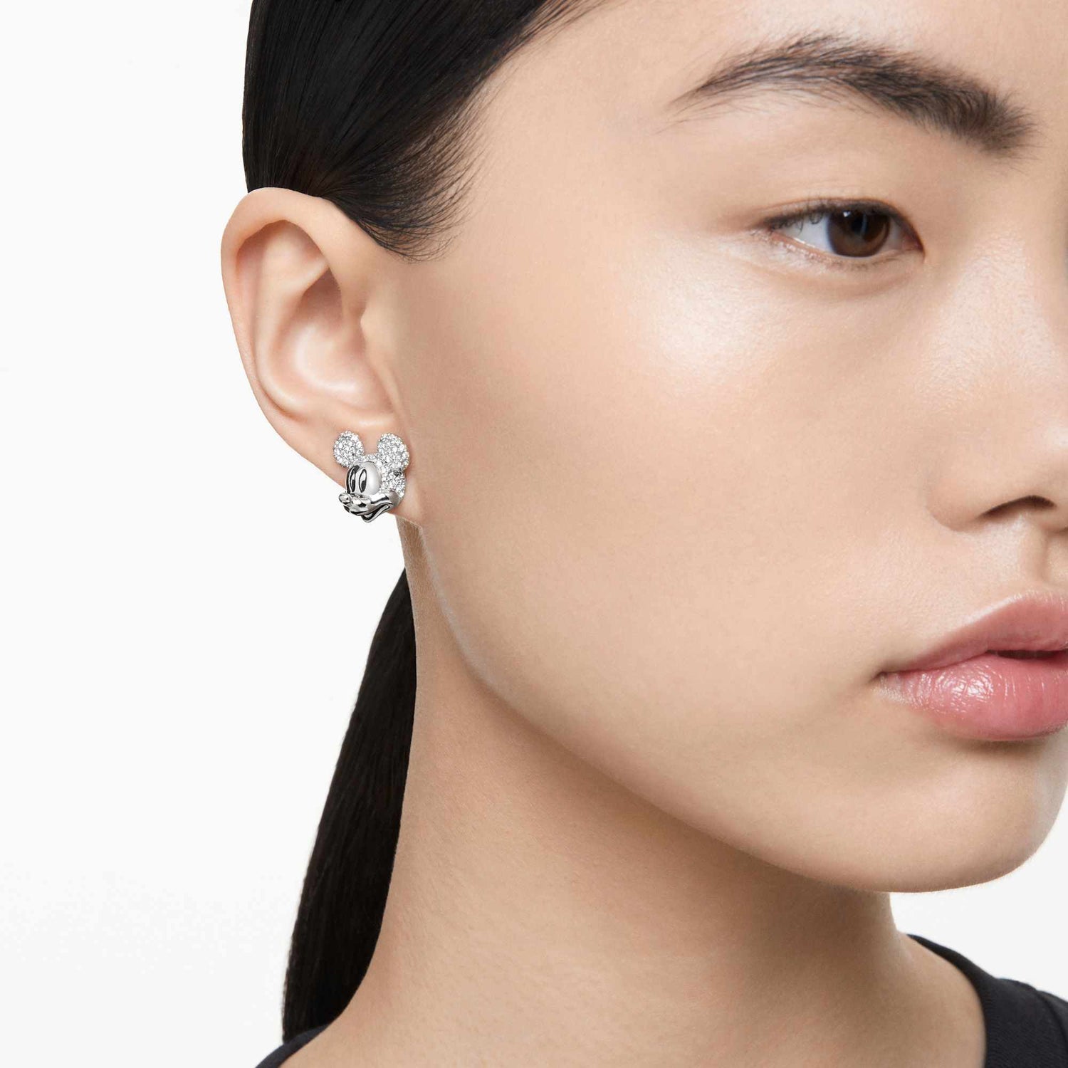Celebrate 100 years of Disney with these fun-loving Mickey Mouse-inspired earrings. Each of the pierced 3D pieces is embellished with a pavé of clear crystals and shows Mickey with a happy smile. A great way to add a dose of joy to your style.