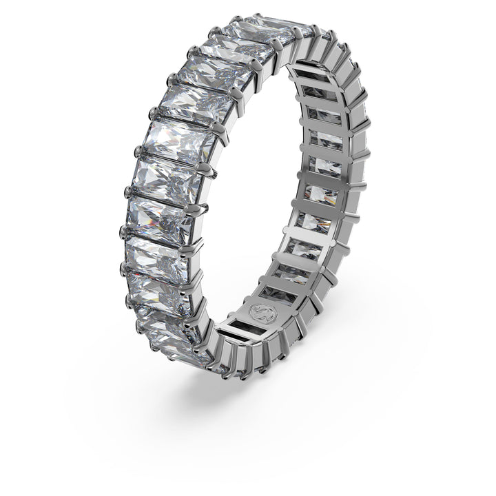 Combining a deep metallic look with eye-catching shine, this Matrix ring will make a versatile addition to your jewelry box. In a process that unites science and magic, grey princess baguette-cut stones are set on a ruthenium plated band. A captivating accessory that is perfect for stacking, allowing multiple combinations for all occasions.
