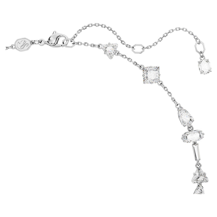 This striking y-shaped necklace is a bold example of Swarovski's savoir-faire. The rhodium plated design is brought to life by a scattering of prong-set crystals in a rich mix of cuts and sizes. To further enhance the intricate detailing, the elongation is embellished with a Swarovski Zirconia and a lobster closure that allows for adjustable styling. Choose this necklace as a holiday gift for someone who loves to look elegant.