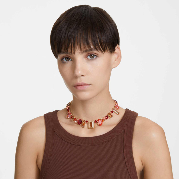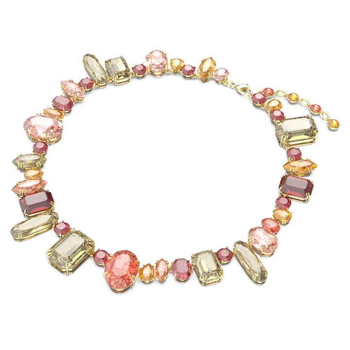 This necklace never stops surprising with its kaleidoscope of vibrant cuts and colors. The sunset hues range from red and golden, through to pink and orange, with each stone set in a glowing gold-tone plated setting finished with a lobster clasp. Reach for this piece to inject some mood-boosting color into your look.