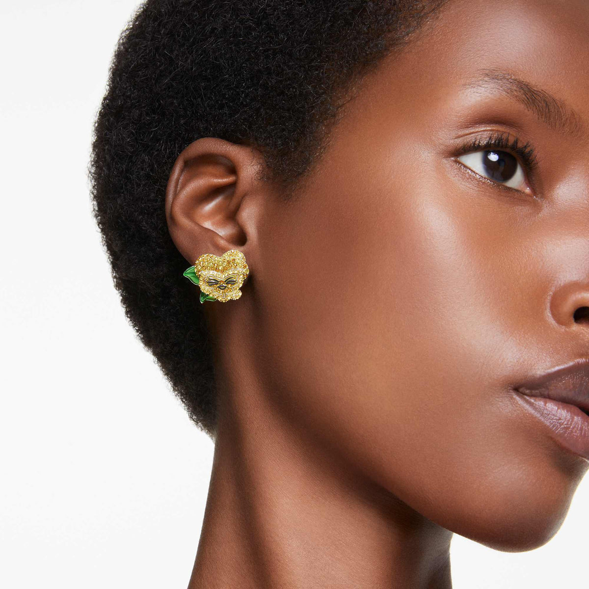 Embrace the magic of Disney’s classic tale with these asymmetrical pierced earrings inspired by the Flowers of Wonderland. Each rhodium-plated piece is brightly adorned with crystals, with pink on one side, and yellow on the other, along with dazzling leaves in green. Wear them on their own or pair with the flower ring from the Alice in Wonderland family.