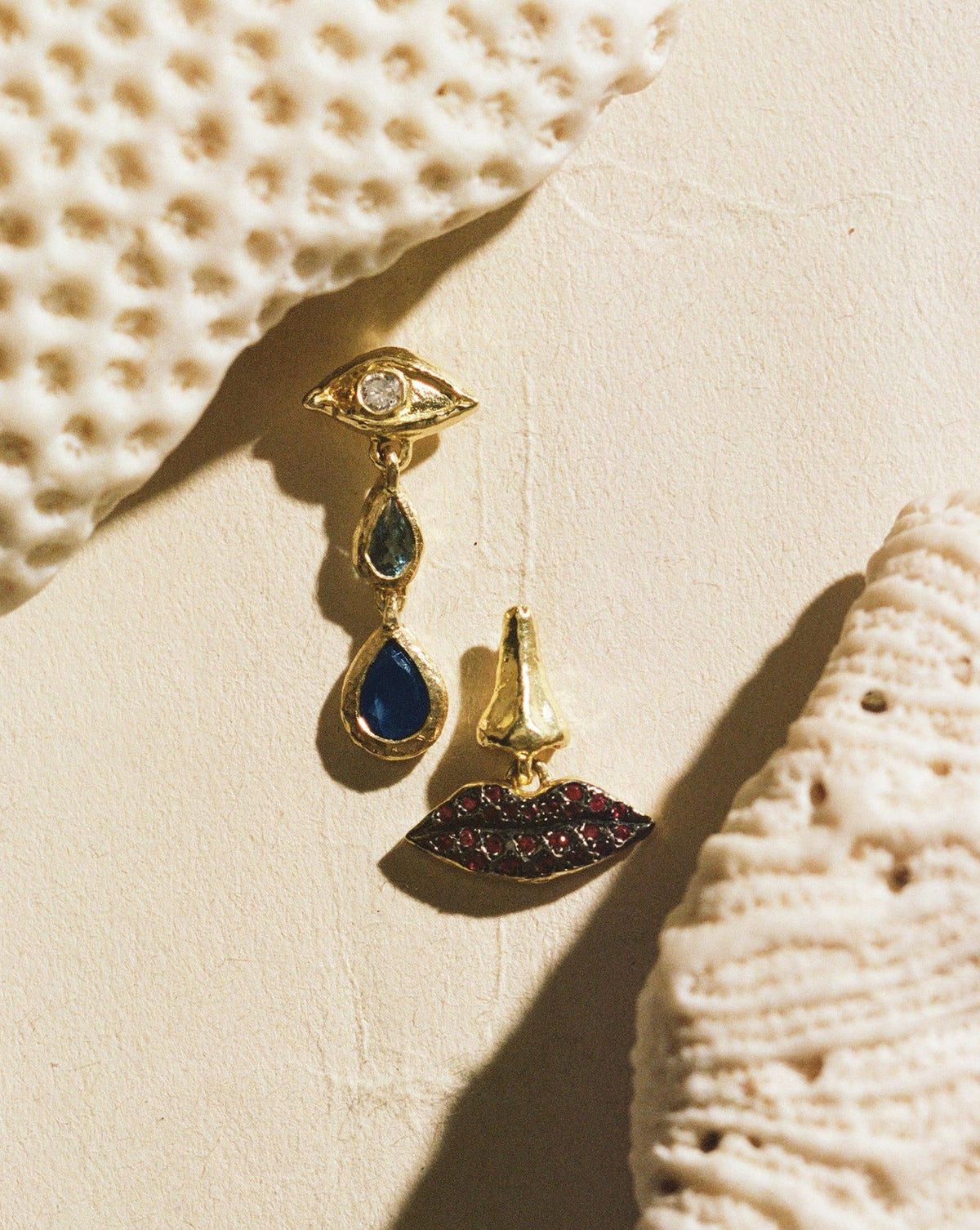 The Long Cry Earring by Pamela Love is a captivating design featuring a diamond eye adorned with double teardrops of aquamarine and sapphire. Inspired by surrealist artistry, this earring exudes mystique and elegance. Handmade in Los Angeles.