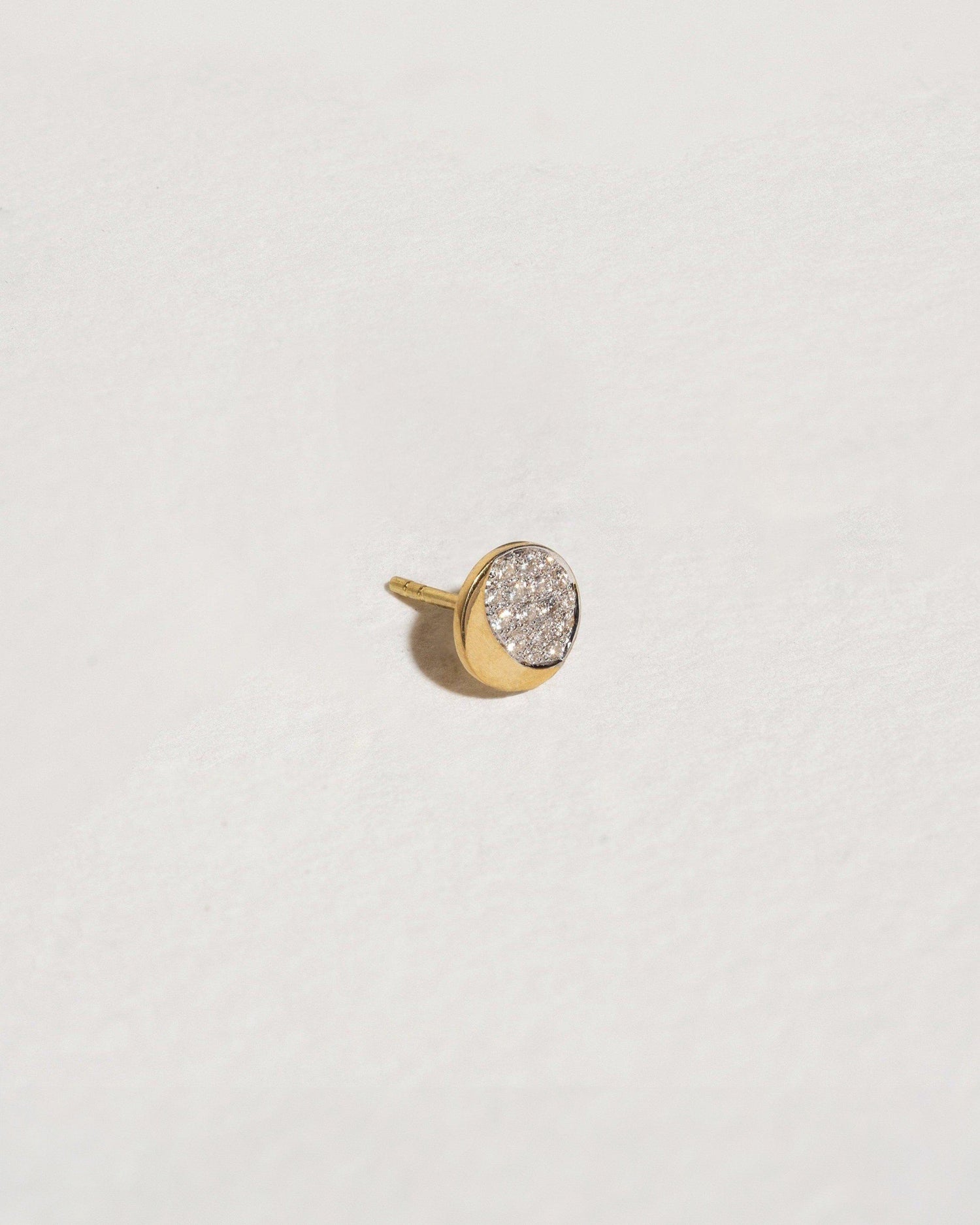 The Moon Phase Stud by Pamela Love is a versatile everyday earring with a touch of celestial sparkle. This delicate stud, crafted in 18k yellow gold, features white diamonds (.13 ct) for a refined, luminous look.