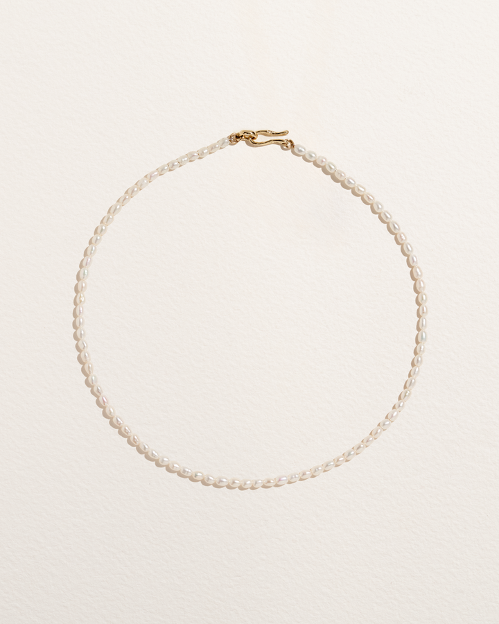 The Seed Pearl Chain by Pamela Love elegantly features delicate freshwater seed pearls, finished with 14k yellow gold clasps. Perfect for layering, wearing solo, or adding charms for a personalized touch.
