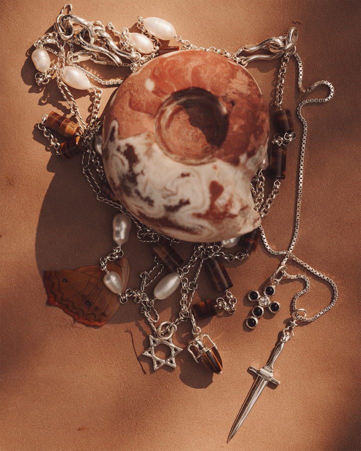 New York-based designer Pamela Love founded her eponymous jewelry brand in 2007, inspired by astrology, tarot, and folklore. Her approach to jewelry is rich in symbolism and storytelling. Influenced by travel, she incorporates celestial, spiritual, and terrestrial motifs, creating pieces that are personal and meaningful. Her unique and edgy creations have become popular globally, every piece reflecting her vision, craftsmanship and commitment to sustainability.