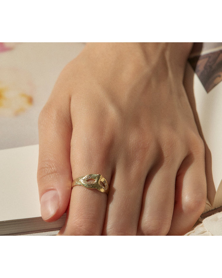 This Masque Ring by Pamela Love transforms a masquerade mask into a dazzling expression of mystery and transformation. Adorned with sparkling diamonds, this ring is a playful yet sophisticated take on self-adornment and identity.