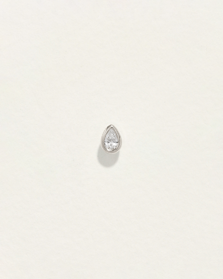 This Raindrop Stud by Pamela Love is a delicate and understated everyday essential. A diamond is nestled within a 14k recycled gold raindrop silhouette, ideal for the helix, lobe, and tragus. Sold as a single earring.