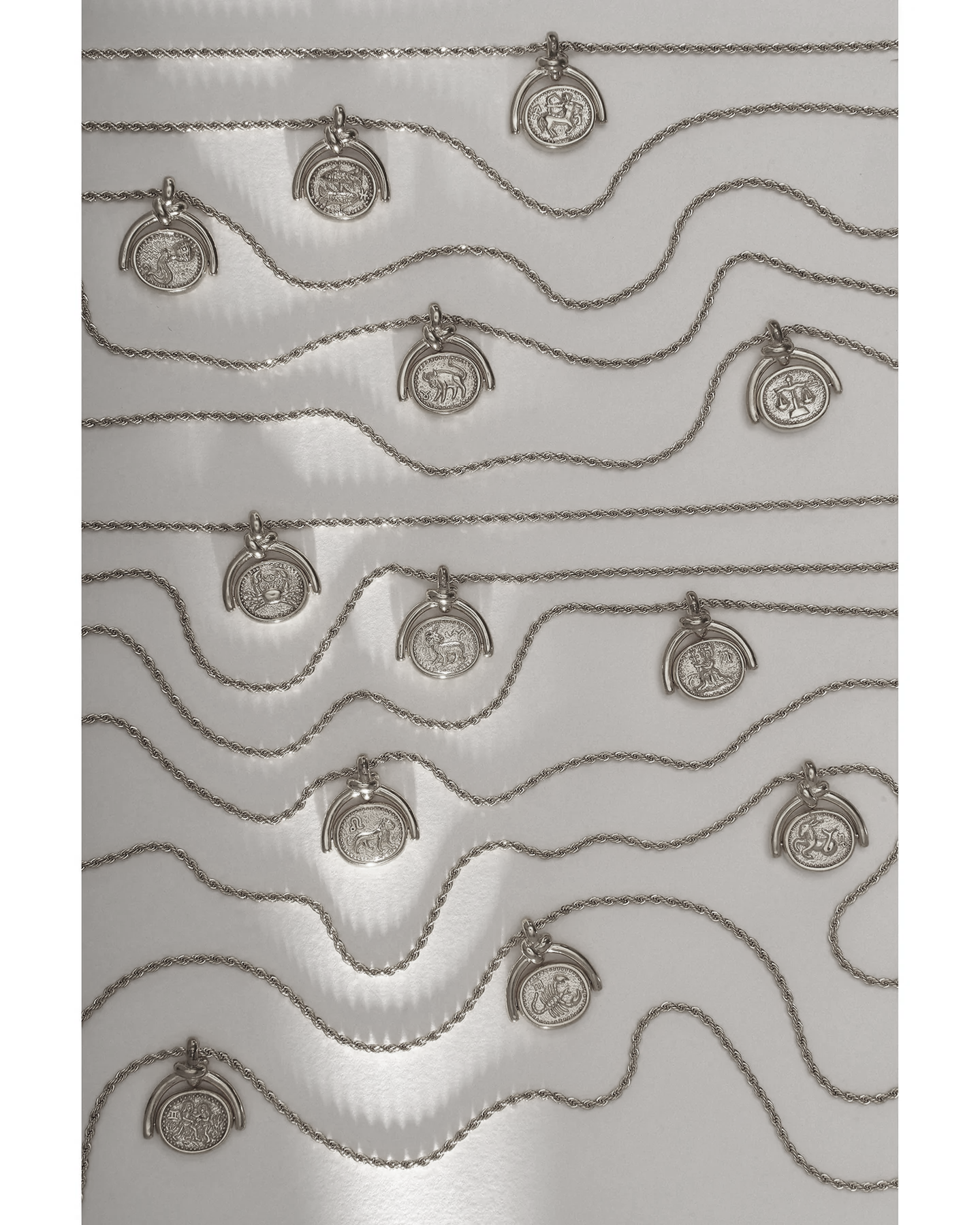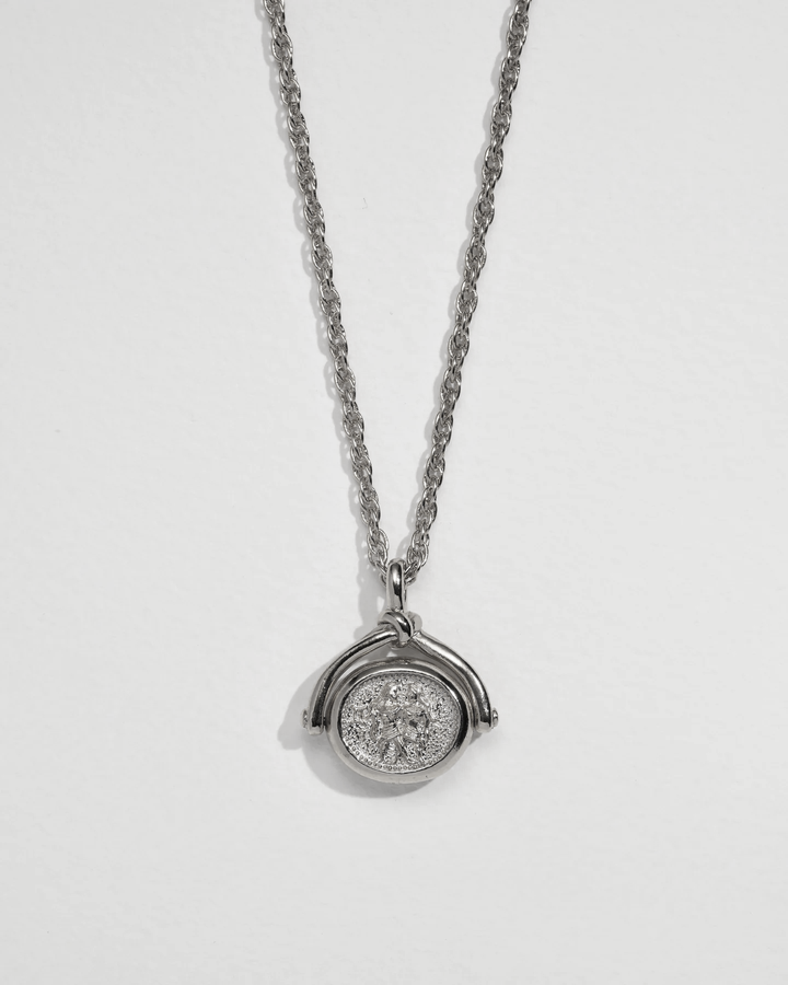 This Gemini Spinner Pendant by Pamela Love is a celebration of Gemini’s duality and versatility. One side features the intricately designed Gemini astrological motif, while the other showcases a breezy sky-blue turquoise coin, representing Gemini’s airy, free-spirited nature. The spinner design allows for personalized styling and movement, reflecting Gemini’s ever-evolving personality.