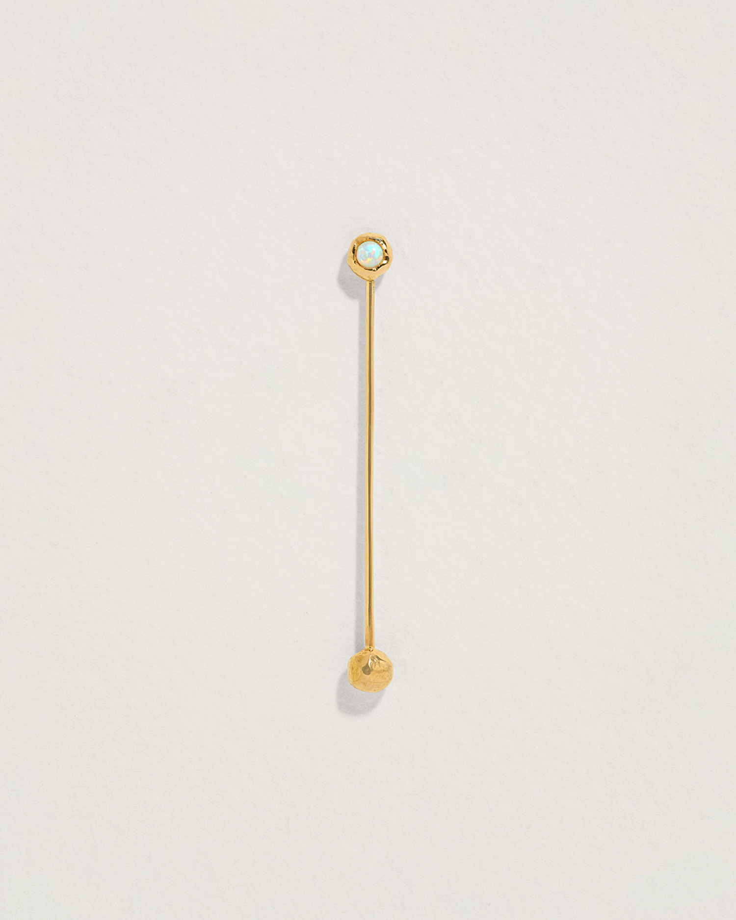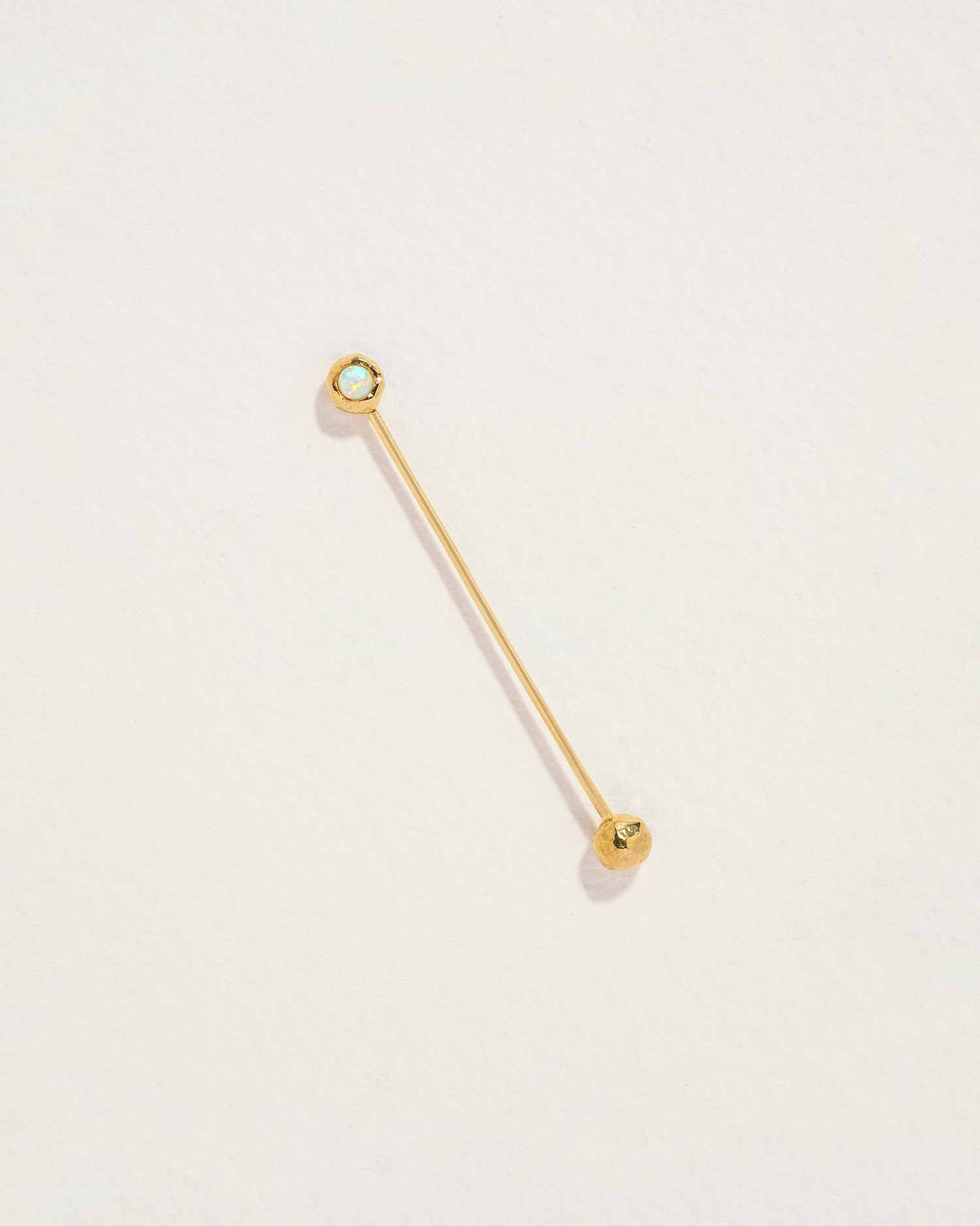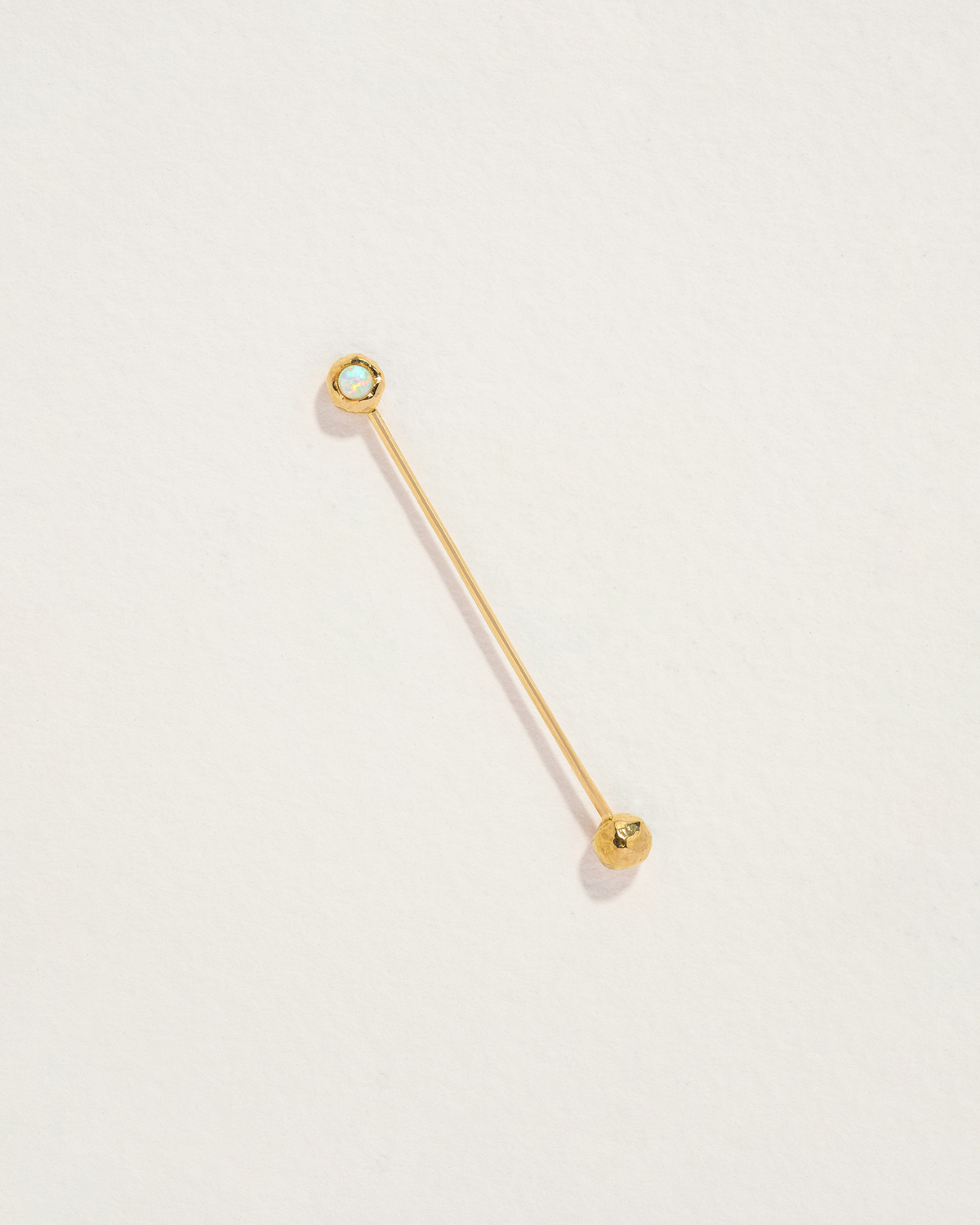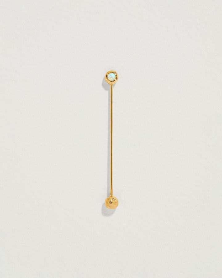 These Straight Barbells by Pamela Love add an ethereal glow to the classic industrial piercing with a luminous opal bezel-set in 14k gold. The fusion of organic texture and soft shimmer makes this a unique yet versatile statement piece. Sold as a single.