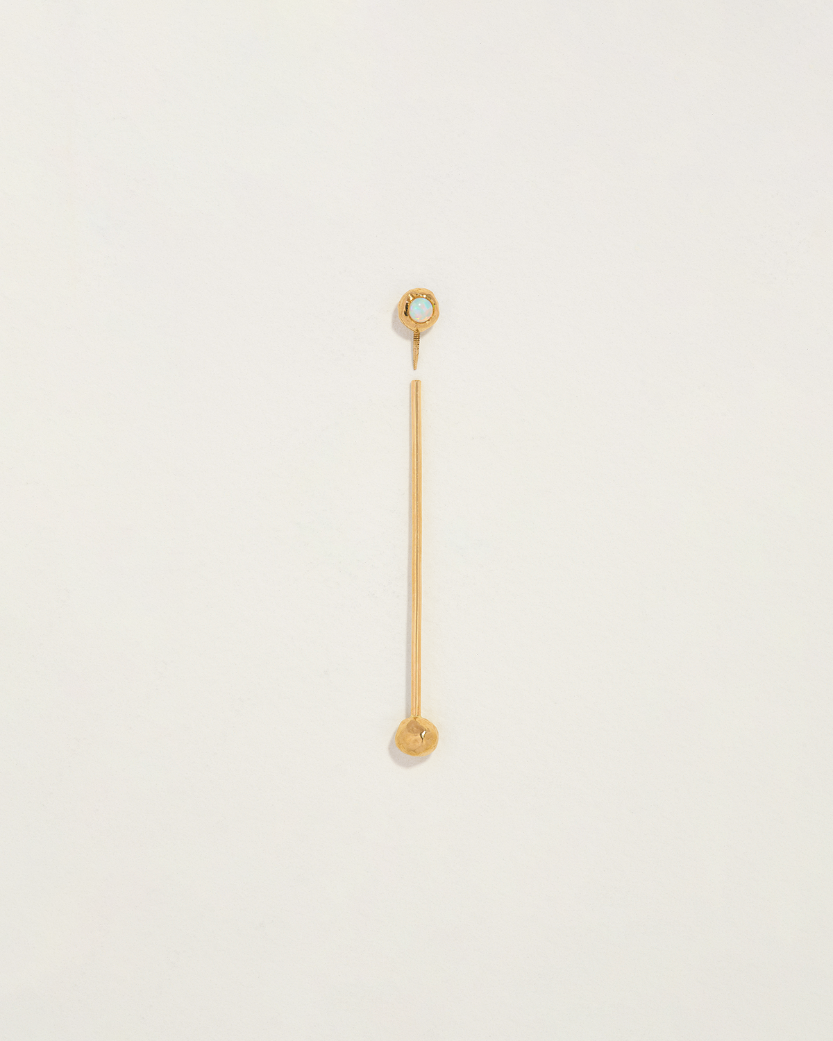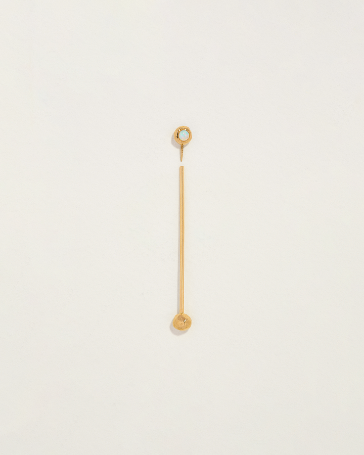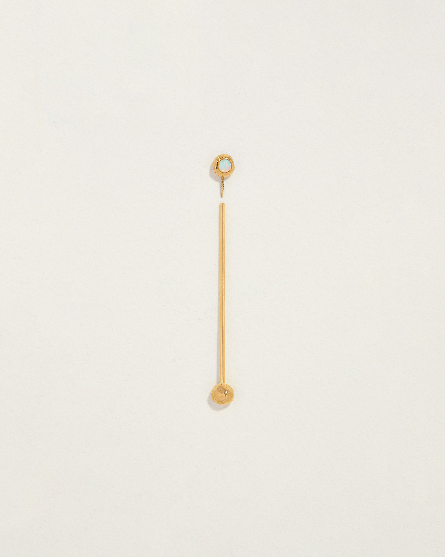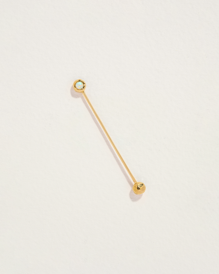 These Straight Barbells by Pamela Love add an ethereal glow to the classic industrial piercing with a luminous opal bezel-set in 14k gold. The fusion of organic texture and soft shimmer makes this a unique yet versatile statement piece. Sold as a single.