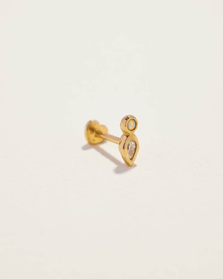 These Bezel Pear Studs by Pamela Love blend celestial radiance with modern edge, featuring a gleaming diamond accented by a petite opal cabochon. The combination of fire and light creates a refined yet playful design, perfect for a subtle statement. Sold as a single.
