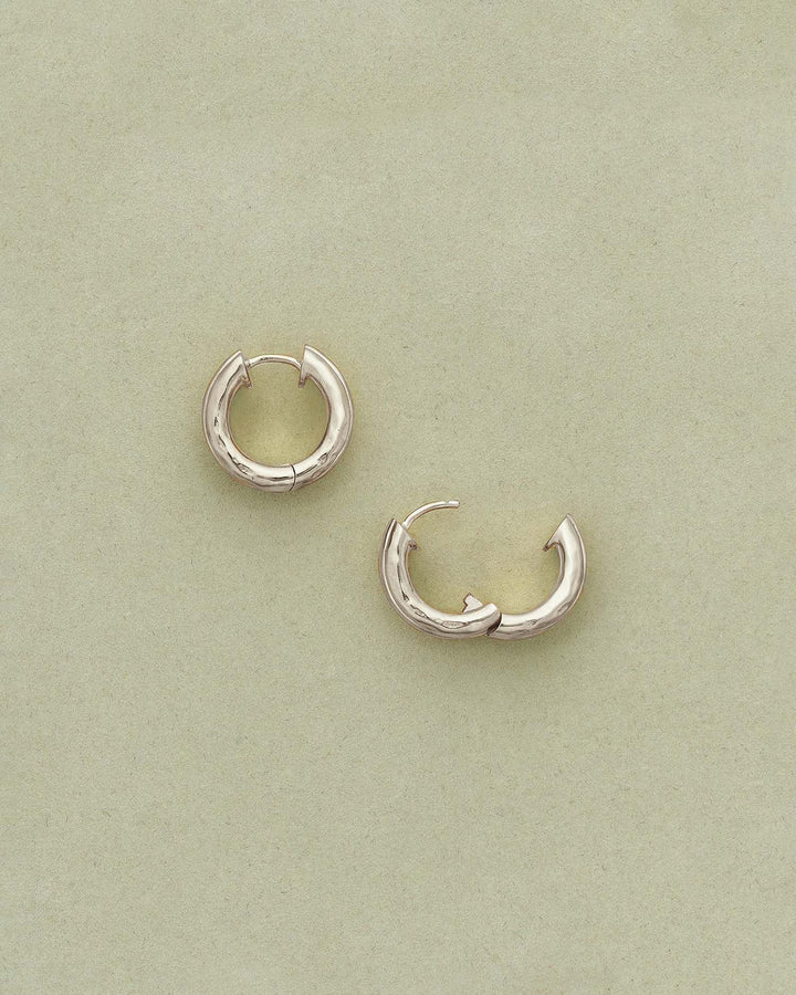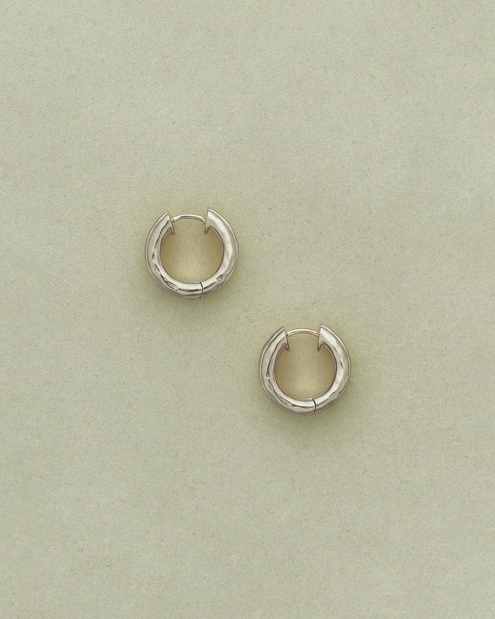These Nadia Hoops by Pamela Love maintain the same striking channeled detailing but are crafted in sleek sterling silver. A minimal yet bold design that elevates any jewelry collection.