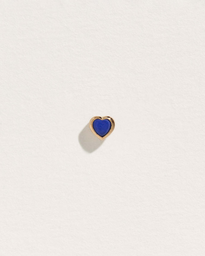 The Bezel Heart Stud by Pamela Love exudes timeless charm with its deep lapis inlay, nestled within a heart-shaped bezel setting. The rich blue hue of lapis has long been associated with wisdom, truth, and inner power, making this stud more than just an accessory—it’s a talisman of self-expression. Its petite size and delicate silhouette make it an effortless addition to any ear stack, ideal for helix, lobe, and tragus piercings. Sold as a single.