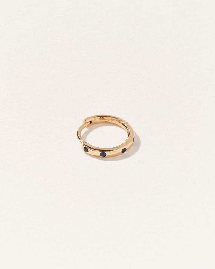The 10mm Dot Huggie by Pamela Love is a refined yet bold piece, showcasing the mystical brilliance of sapphires. These deep blue gems, long associated with wisdom and protection, stand out in a minimalist, floating design that makes a subtle yet undeniable statement. Whether stacked or worn solo, this piece is a sophisticated addition to helix and lobe piercings. Sold as a single.