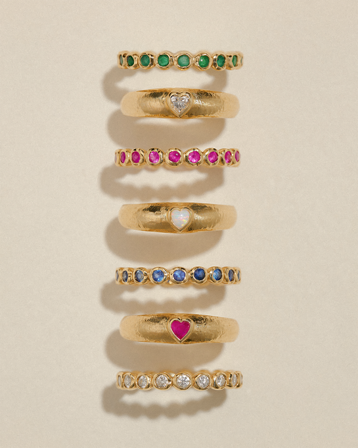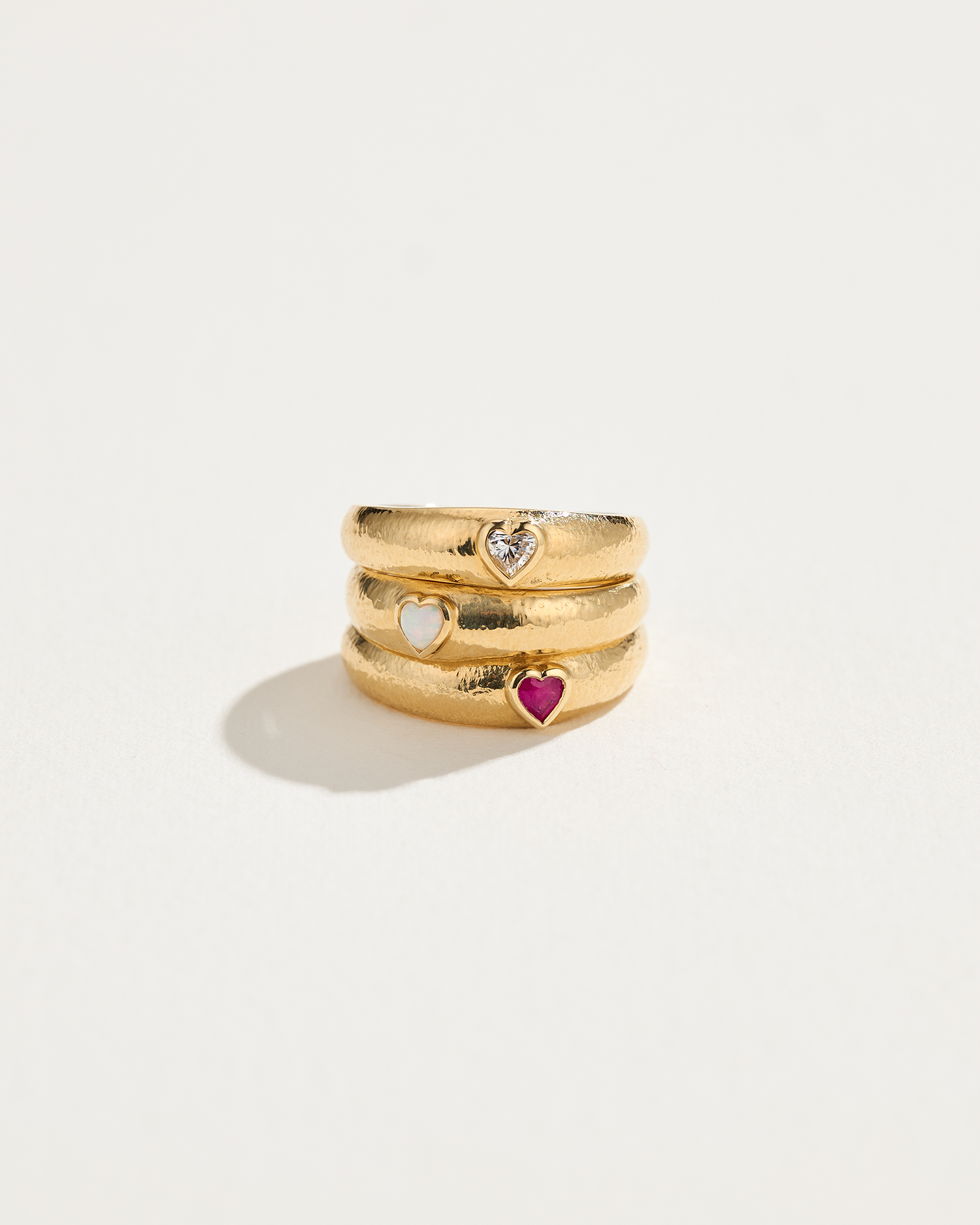 The Bezel Heart Ring in ruby by Pamela Love is a modern ode to love and passion. A deep crimson ruby, symbolizing strength and devotion, is delicately bezel-set in a tapered gold band, creating a seamless silhouette that feels both timeless and contemporary. Whether worn solo for an understated elegance or stacked for a bold statement, this ring is a meaningful addition to any jewelry collection.