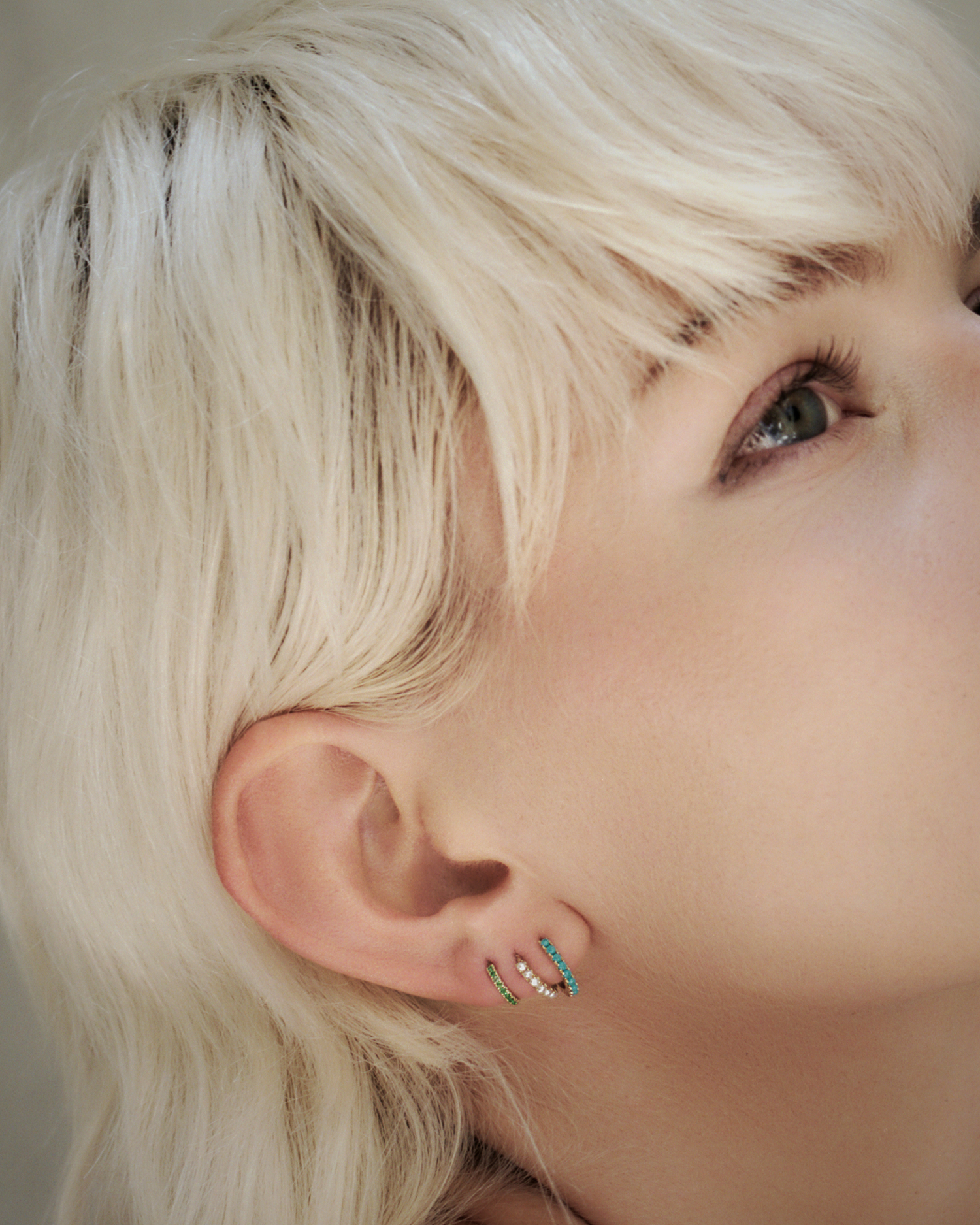 The 6mm Pavé Huggie in pink sapphire by Pamela Love is a playful, feminine take on the classic huggie. A string of vibrant pink sapphires punctuates the huggie, bringing a delicate yet bold pop of color to your piercing. The petite size makes it ideal for layering or wearing solo, perfect for helix, lobe, or rook piercings.