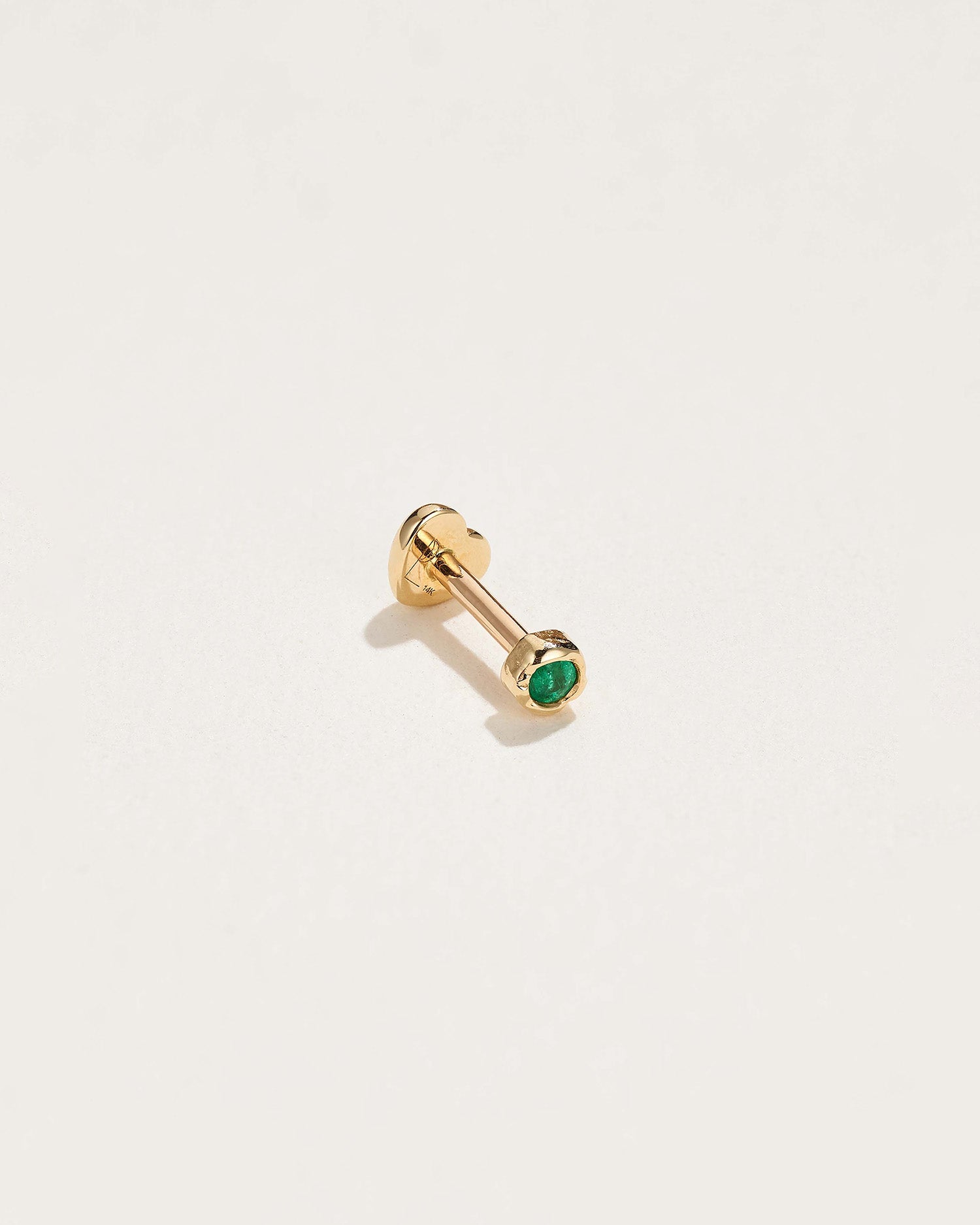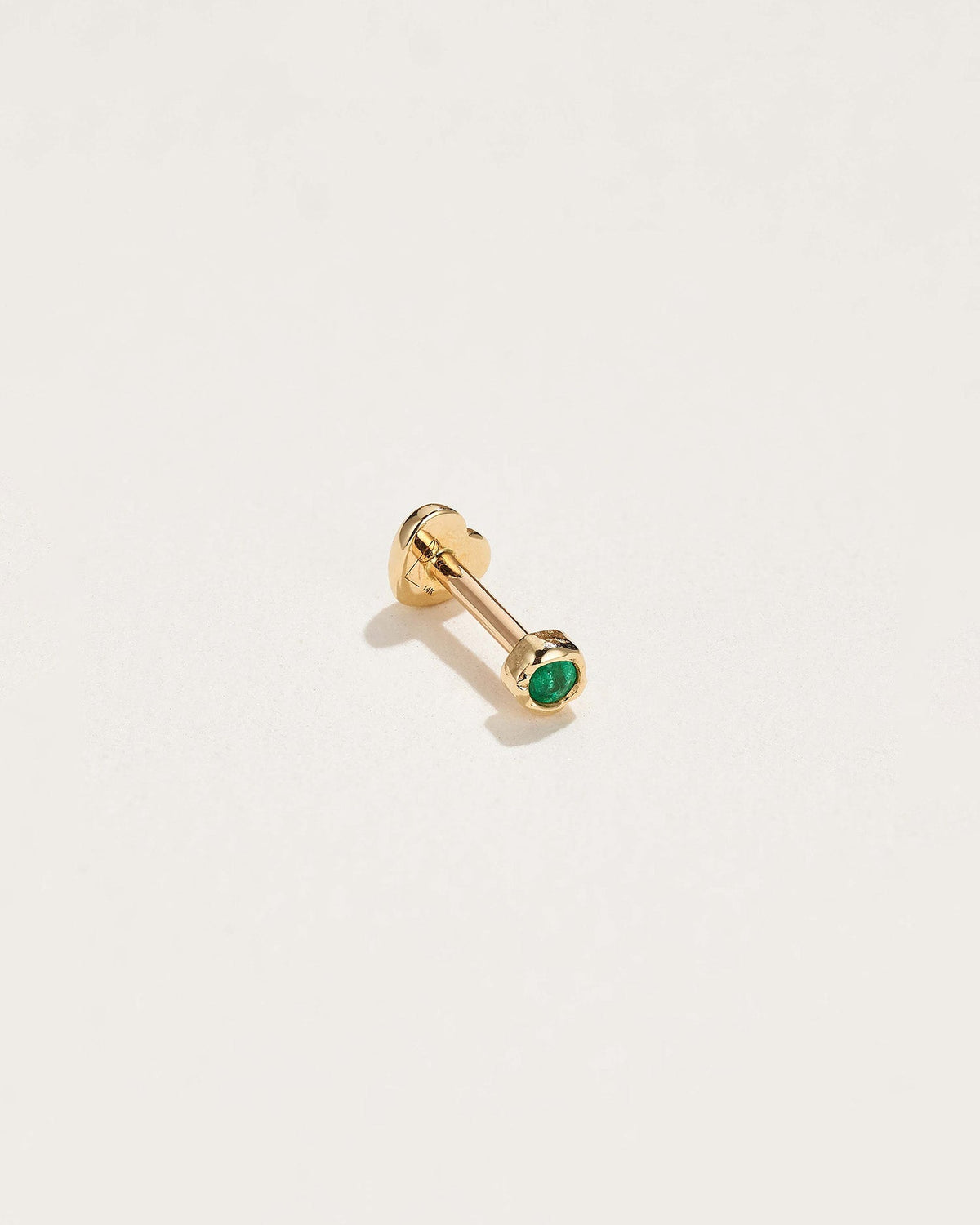 Handcrafted in 14k yellow gold with emerald. Stud: 3mm, 16 gauge (1.2mm). Closure: threaded heart-shaped ball back.
