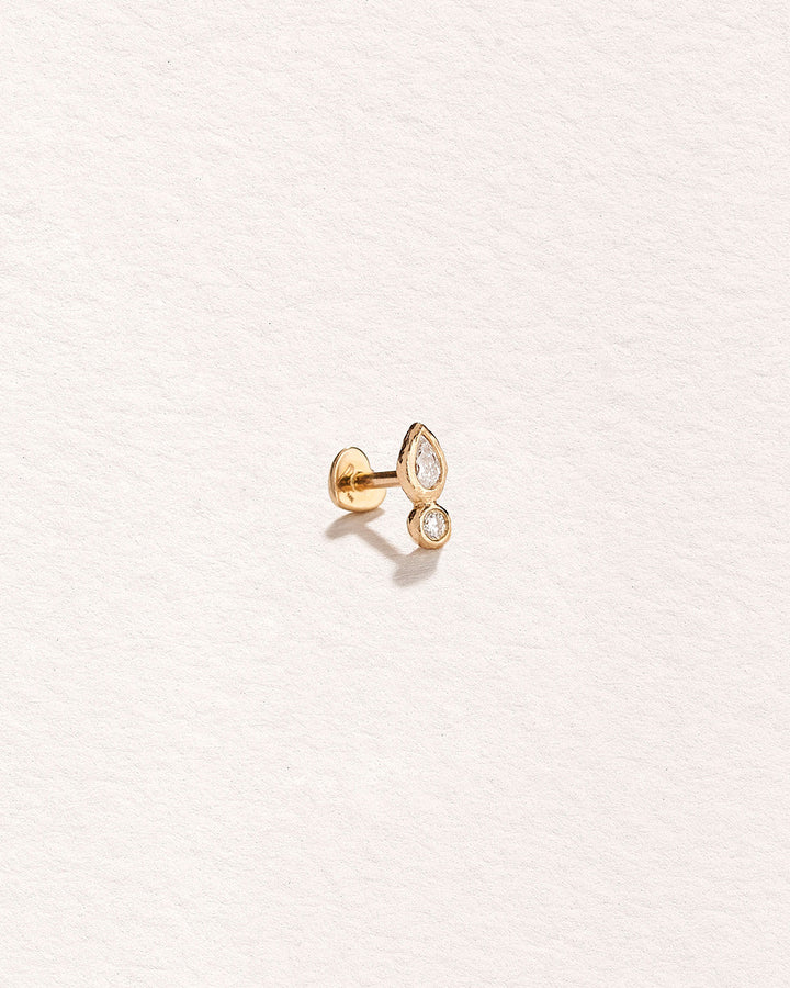 The Bezel Pear Stud by Pamela Love features a gleaming diamond accentuated by a petite diamond cabochon, creating a playful yet elegant stud. Ideal for any piercing, including the lobe or helix.