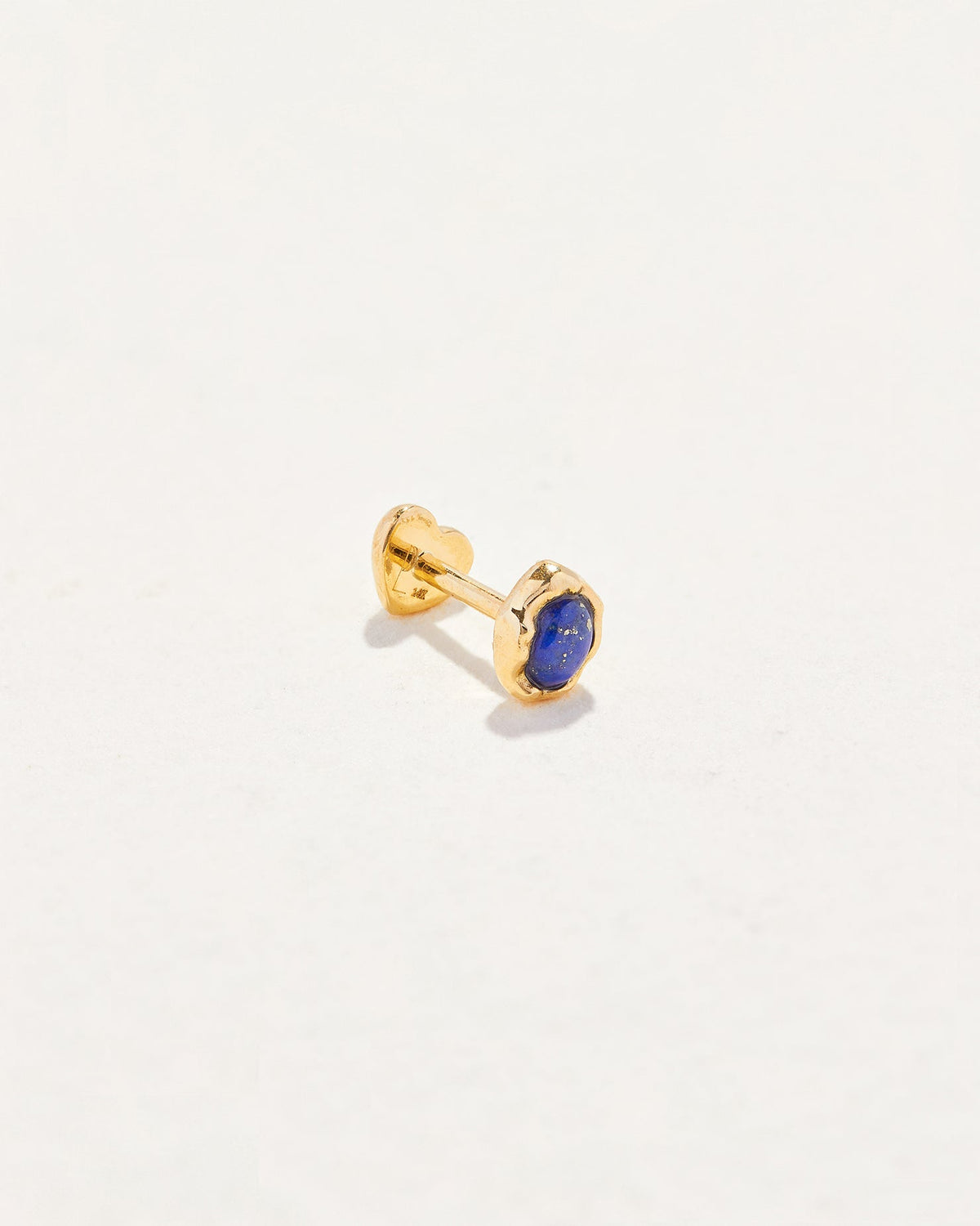 Crafted in 14k yellow gold with lapis. Measures 4x5mm; threaded back post thickness: 16 gauge (1.2mm), post length: 6.5mm. Closure: Threaded heart-shaped ball back.