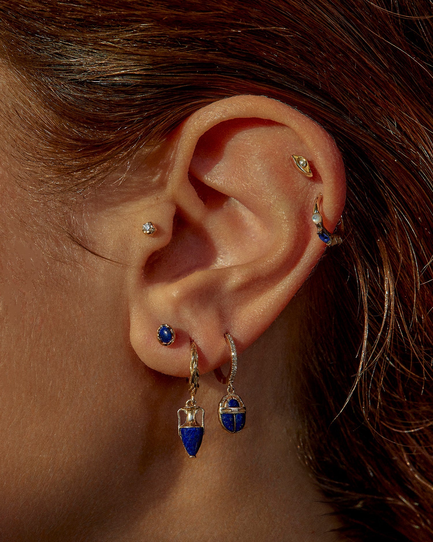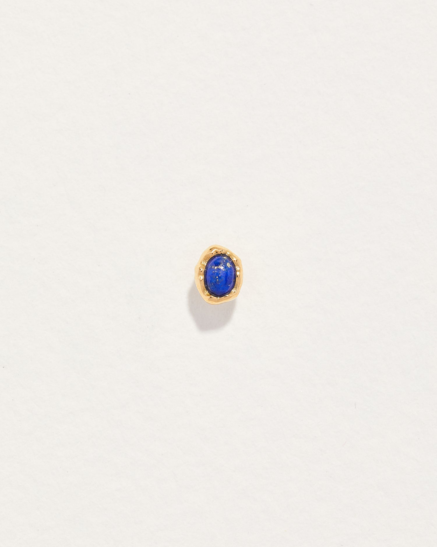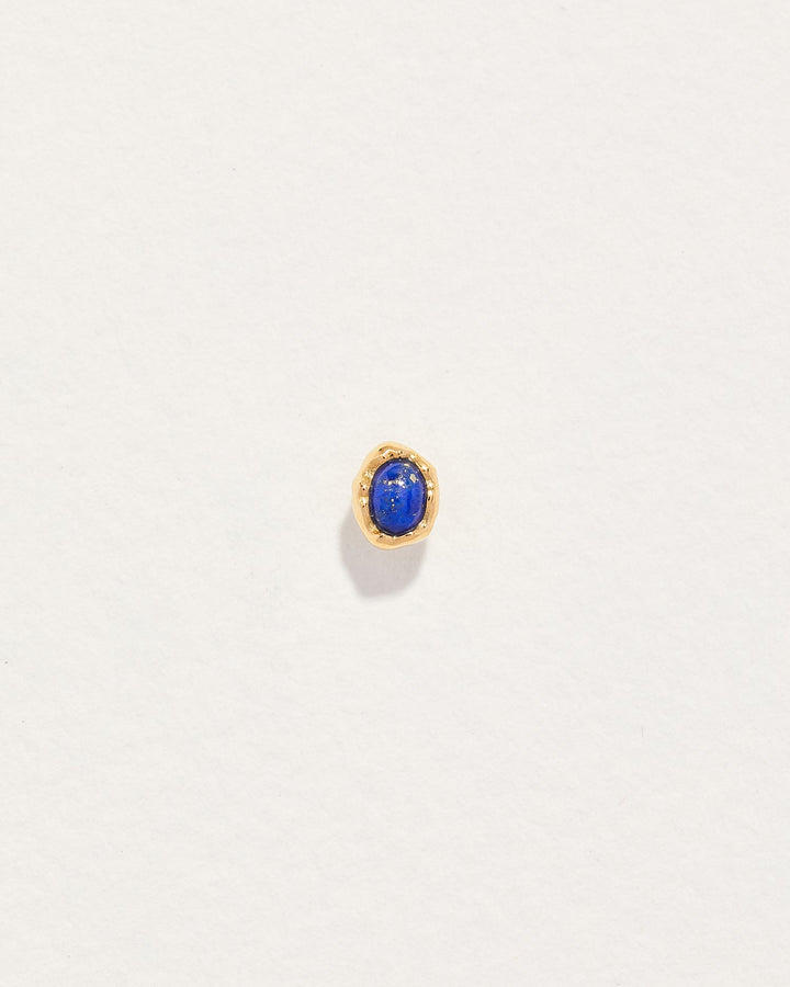 This Nugget Stud by Pamela Love showcases a striking lapis lazuli encased in a molten 14k gold setting. Its rich hue and organic texture make it a statement piece for everyday wear, ideal for layering or wearing alone.