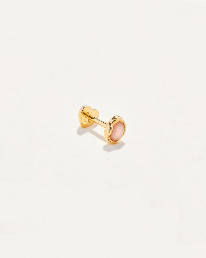 This Nugget Stud by Pamela Love highlights a dreamy pink opal encased in a molten 14k gold setting. Its soft hue and organic form make it an elegant yet understated piece, perfect for multiple piercings.