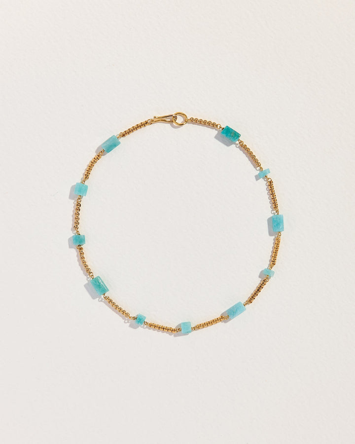 14k yellow gold plate over brass, amazonite. Chain length: 15'.